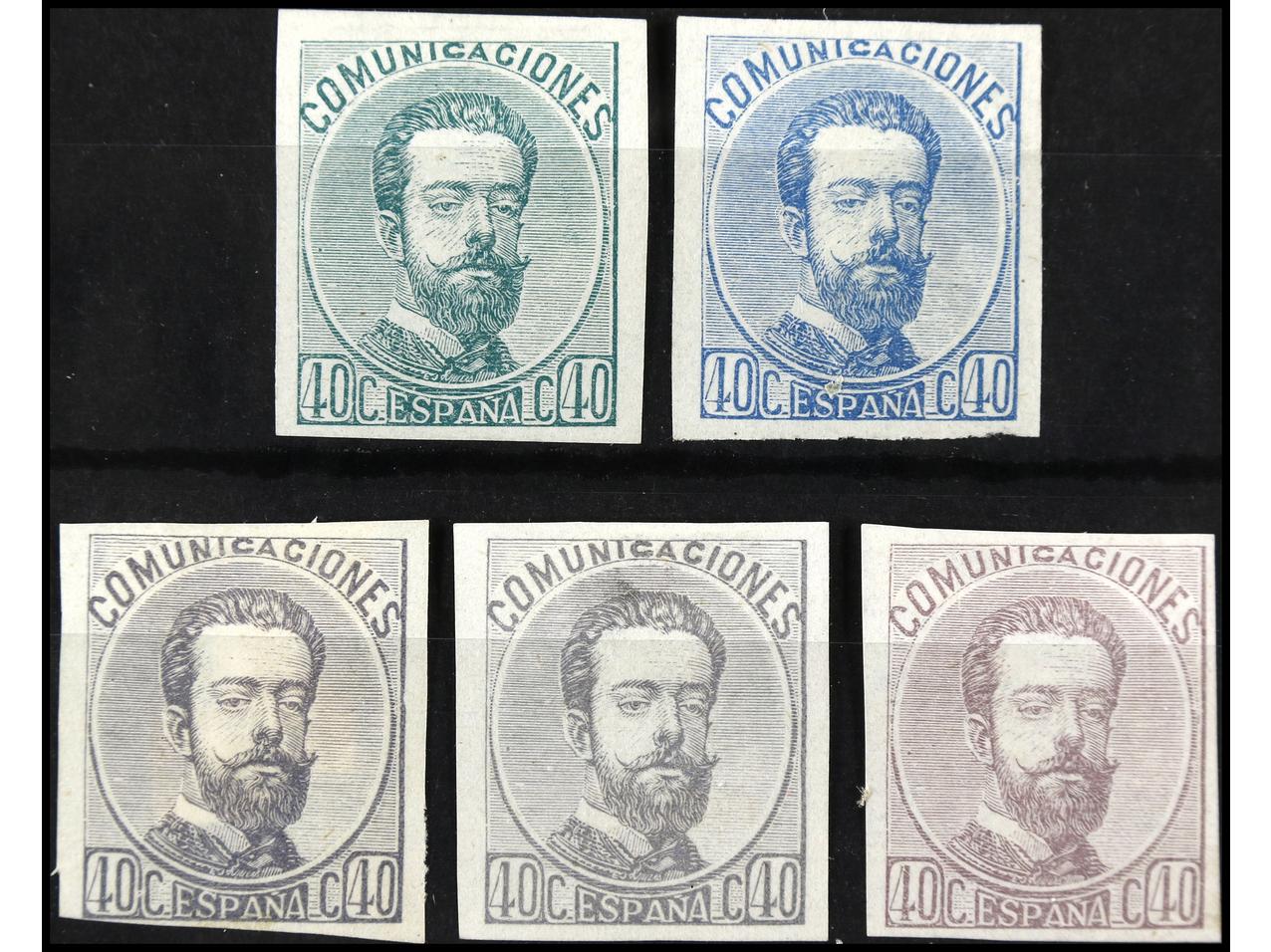 ESPAÑA. ENSAYOS DE COLOR. 40 cts. verde, azul, lila, lila gris y violeta (Gálvez 790/94). Ed.125. (Image1) (Image2)