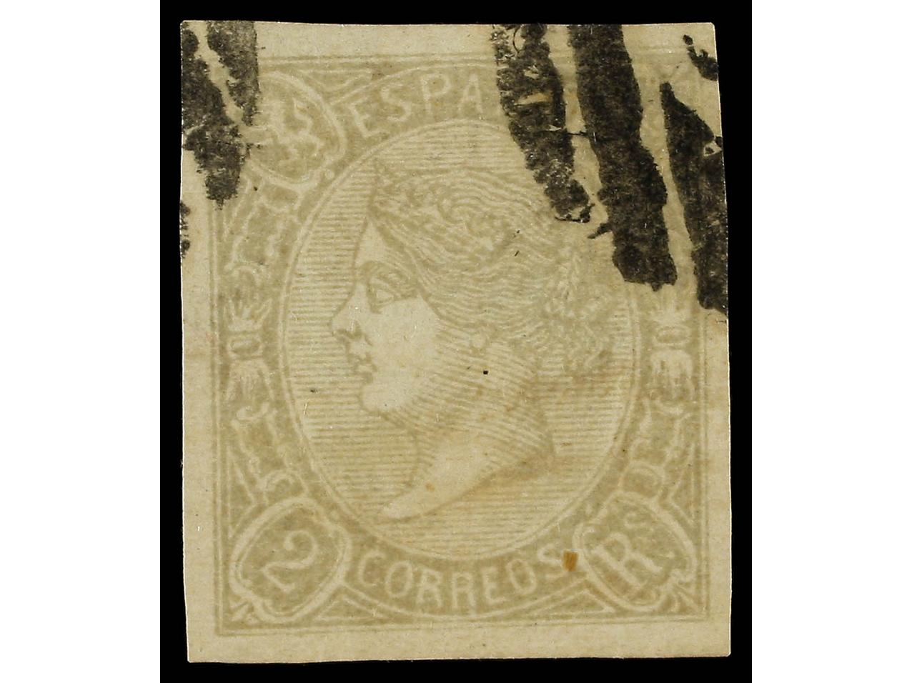 ESPAÑA. 2 reales gris. FALSO POSTAL. (Graus 91 I). F. Roig. Ed.73F. (Image1)