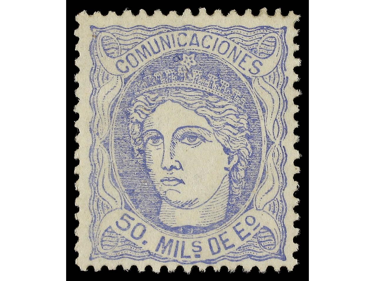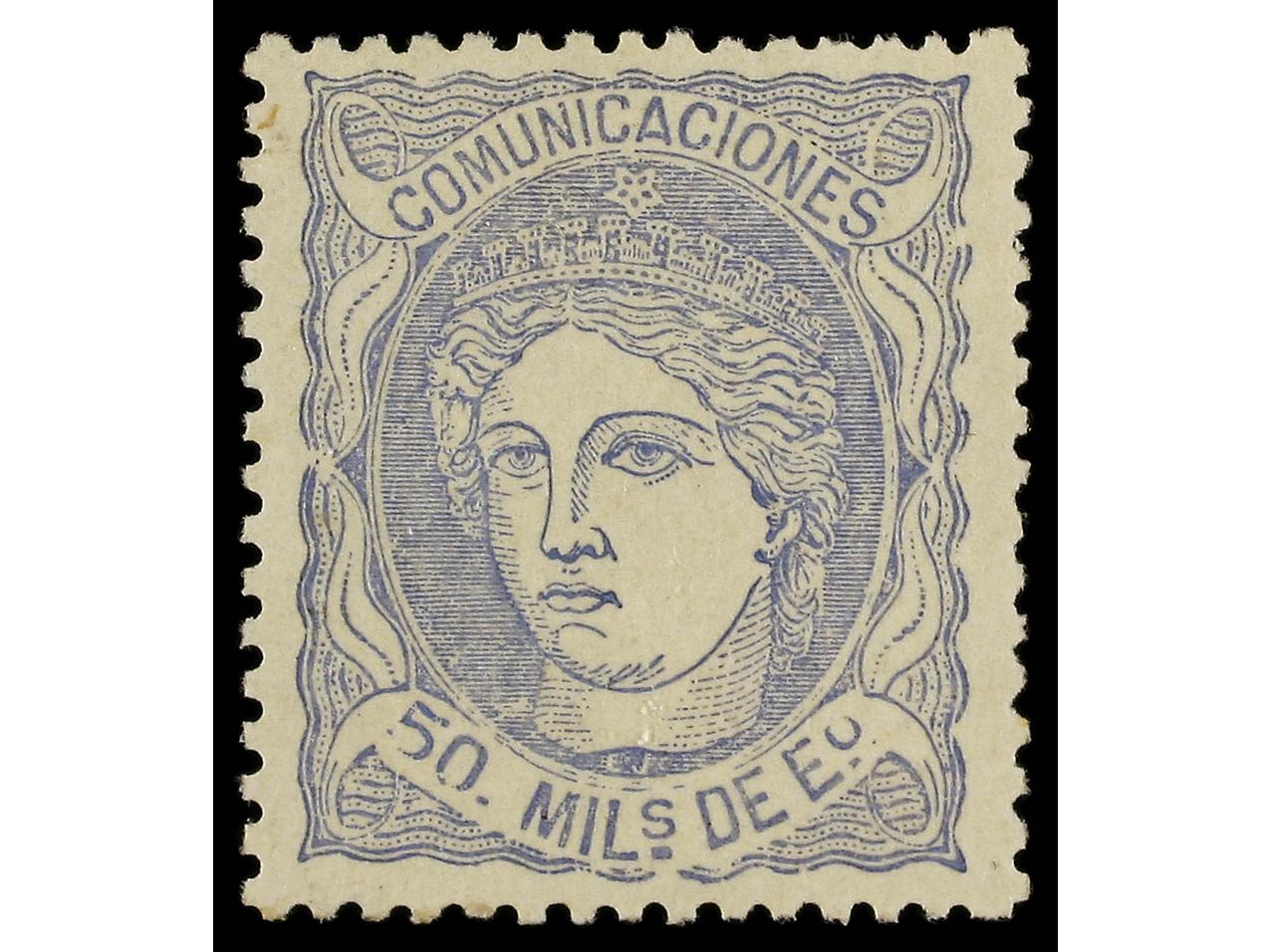 ESPAÑA. 50 mils. azul. FALSO POSTAL tipo VIII en nuevo. (Graus 139 VIII). Ed.107F. (Image1)