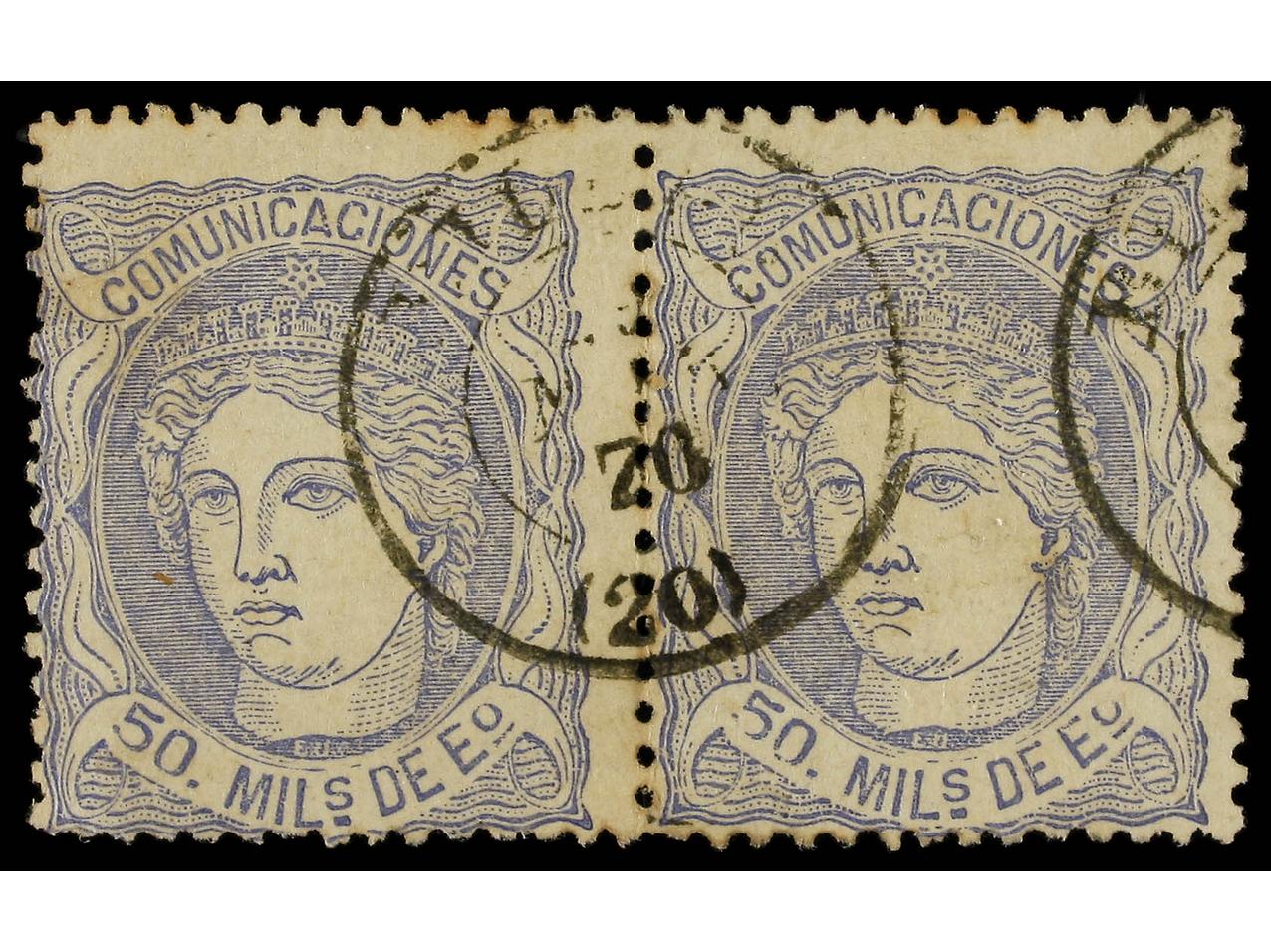 ESPAÑA. 50 mils. azul. FALSO POSTAL tipo XII, pareja mat. fechador de BILBAO. MAGNÍFICA y RARÍSIMA. Ex. col. GRAUS (Graus 139 XI). Ed.107F (2).