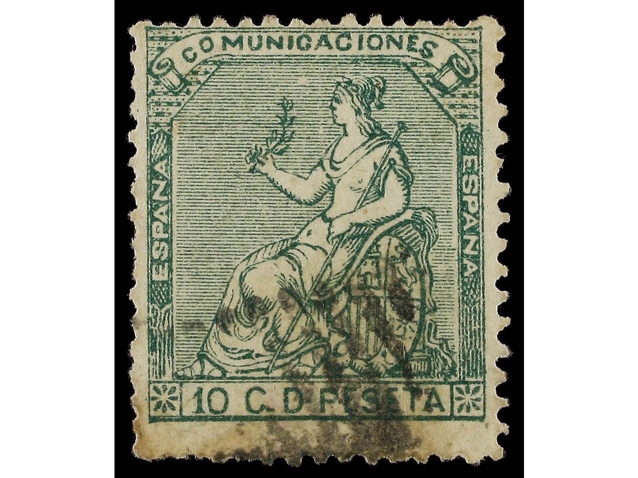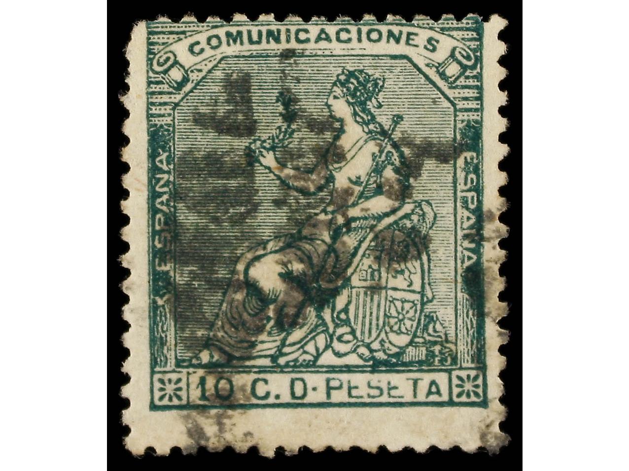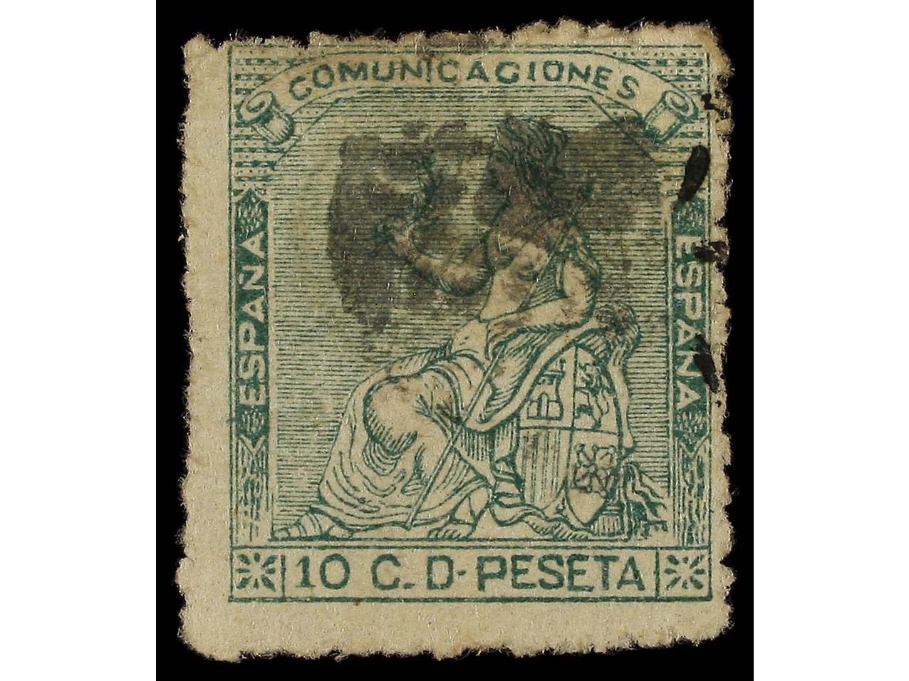 ESPAÑA. 10 cent. verde. FALSO POSTAL tipo IV. RARO. (Graus 182 IV). Ed.133F. (Image1)