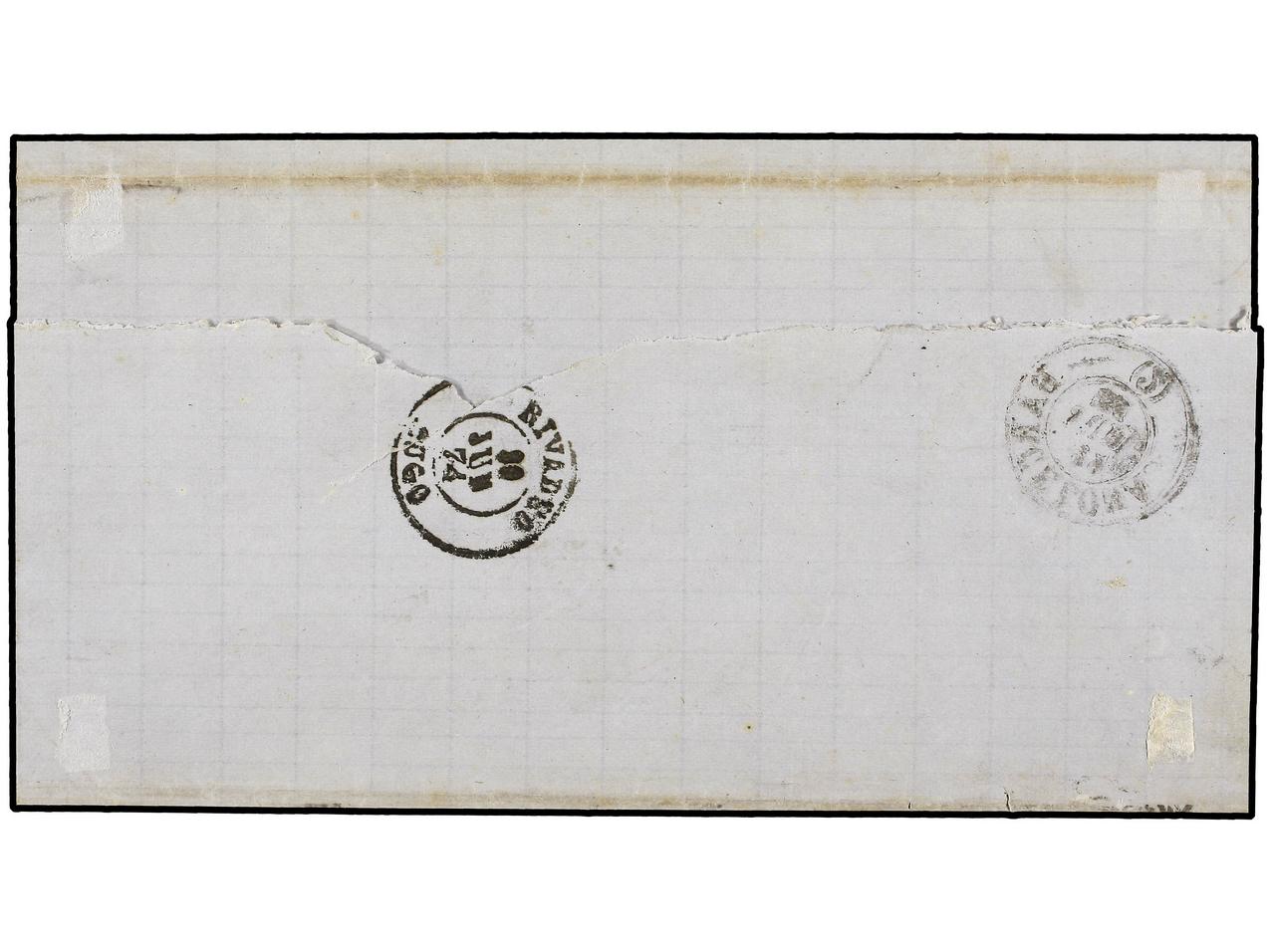 ESPAÑA. 1873. SANTANDER a RIVADEO. 20 cent. verde. FALSO POSTAL tipo XII. Mat. parrilla y fechador de SANTANDER. (Graus 182 XII). Ed.133F. (Image1) (Image2)