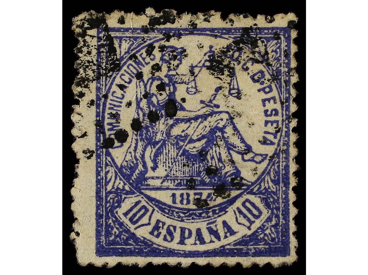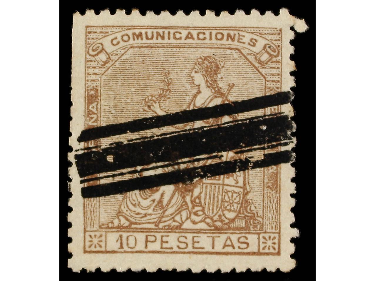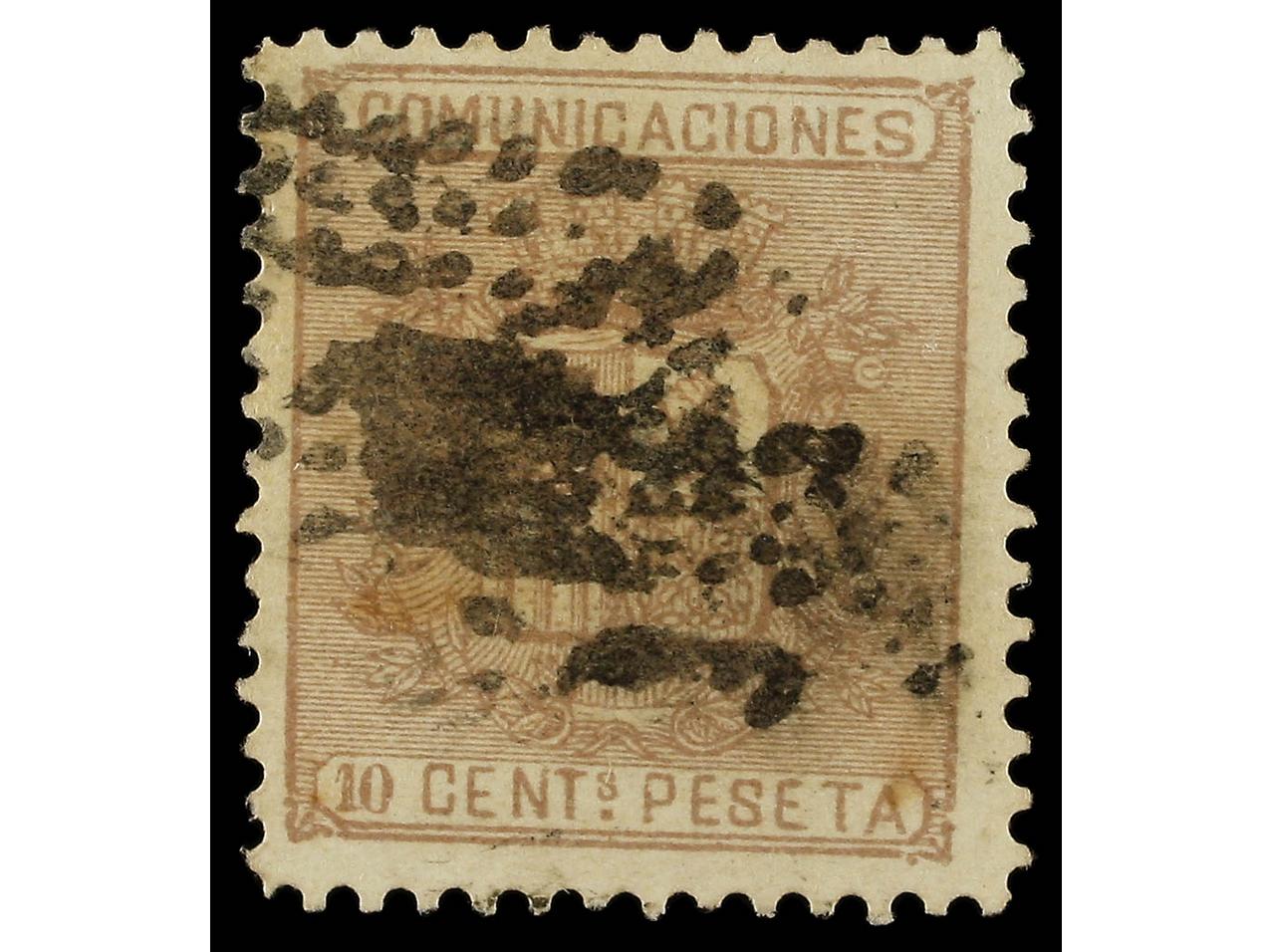 ESPAÑA. 10 pts. castaño (Gr. 190 tipo I). Barrado. F. Soro. Ed.140F. (Image1)