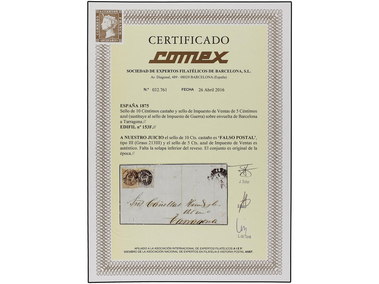 esta confirmación de franqueo es la única conocida (Graus 213 III). Cert. COMEX. Ed.153 F. (Image1) (Image2)