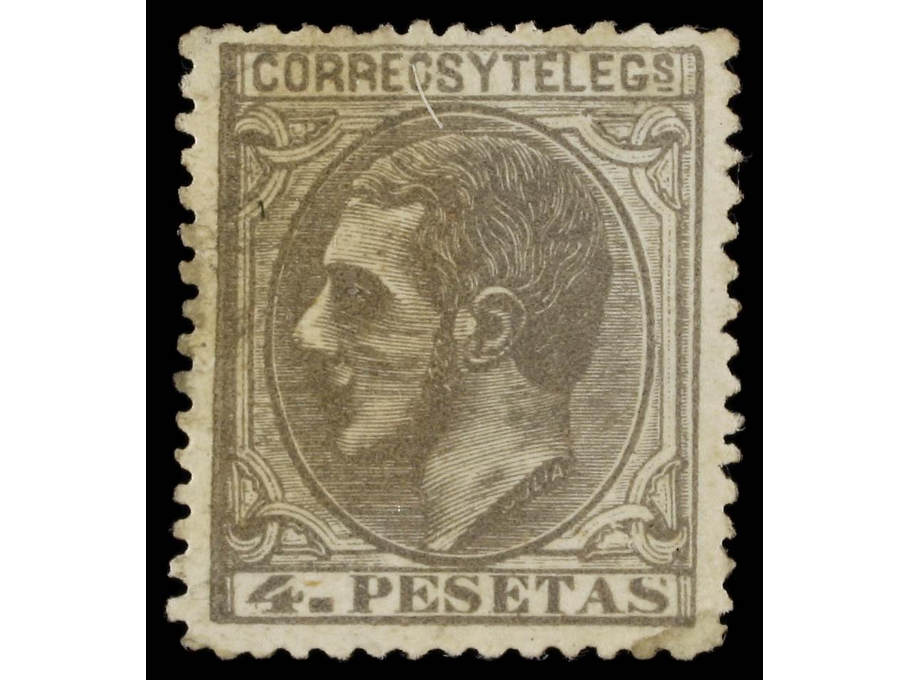 ESPAÑA. 4 pts. gris. FALSO POSTAL, tipo I. Raro en nuevo (Graus 286 I). Cert. SORO. Ed.208F. (Image1) (Image2)