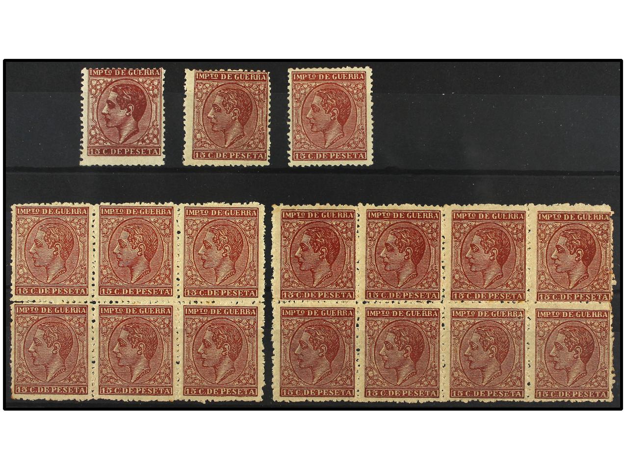 ESPAÑA. 15 cts. carmín. FALSO POSTAL. 3 sellos nuevos, bloque de 6 y de 8. (Graus 265 I). Ed.188F. (Image1)