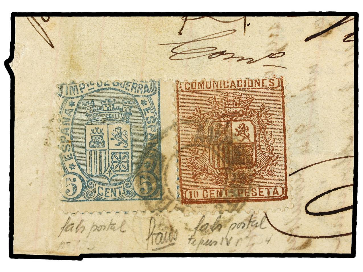 ESPAÑA. 10 cts. castaño. FALSO POSTAL tipo IV y 5 cts. verde de Imp. de Guerra FALSO POSTAL tipo I. Ex. Col. GRAUS. (Graus 213 IV, 215 I). Ed.153F, 154F.