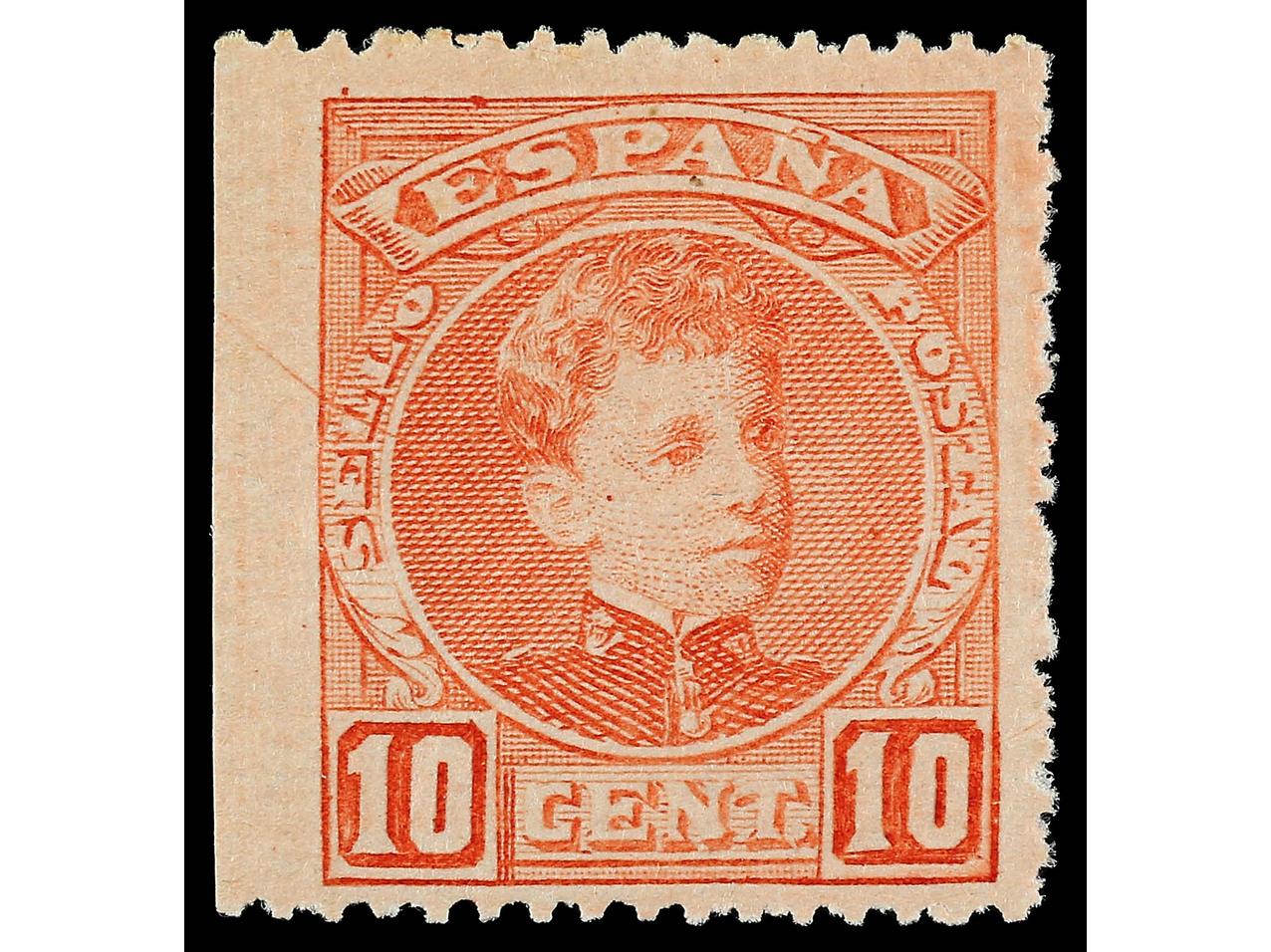ESPAÑA. 10 cts. rojo SIN DENTAR MARGEN IZQUIERDO. PRECIOSO. Ed.243smi. (Image1)
