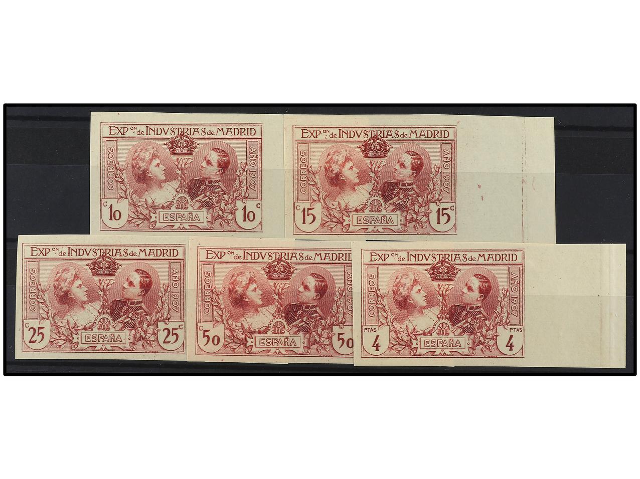 ESPAÑA. JUEGO COMPLETO de cinco sellos con los cambios de color en carmín. Ed.SR 1/6. (Image1) (Image2)