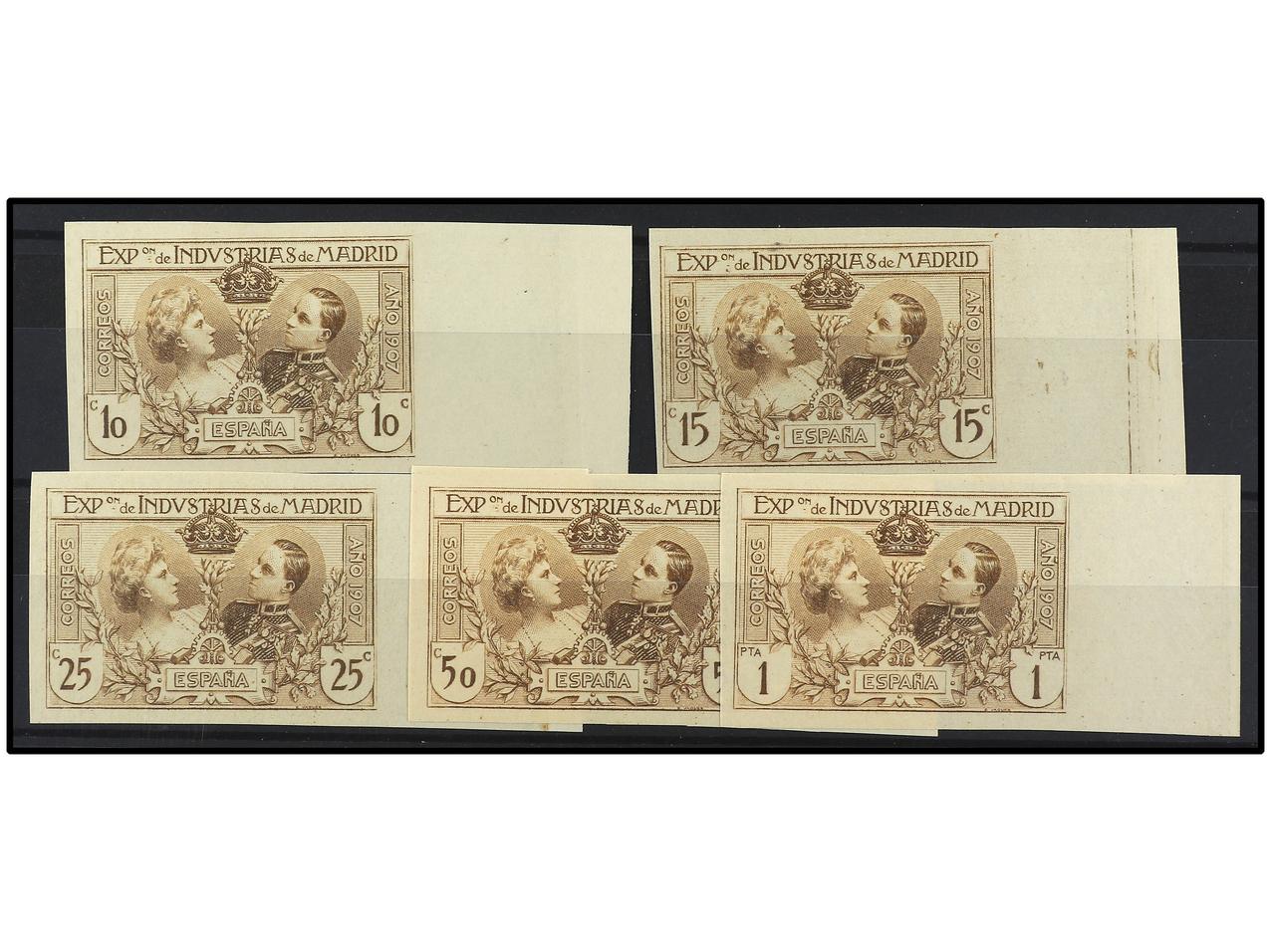 ESPAÑA. JUEGO COMPLETO de cinco sellos con los cambios de color en castaño amarillo. Ed.SR 1/6. (Image1) (Image2)