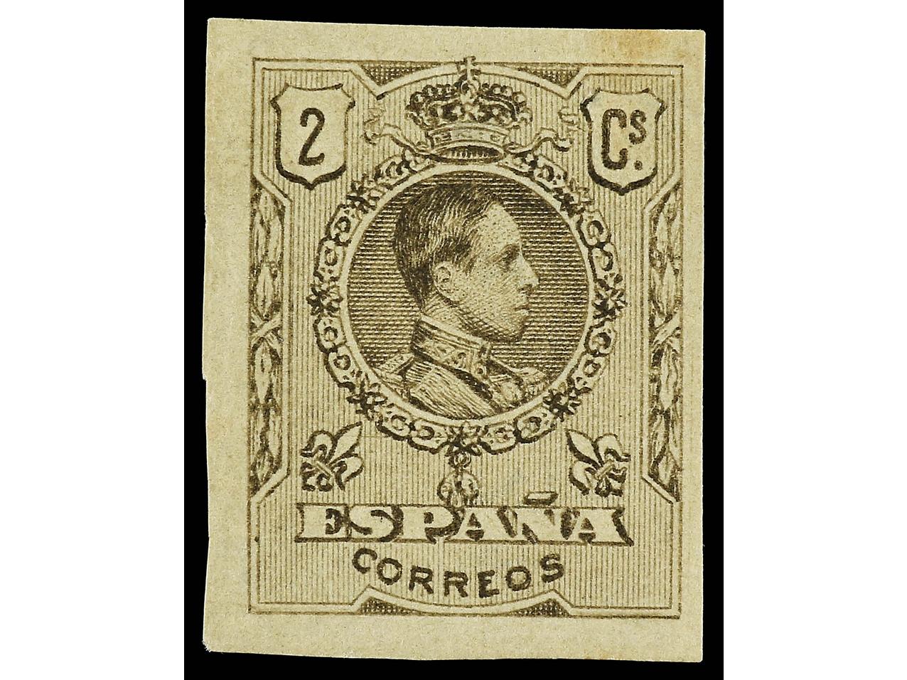 ESPAÑA. 2 cts. castaño SIN DENTAR, al dorso numeración A438,131. MUY RARO. Ed.267s. Cat. 230€. (Image1)