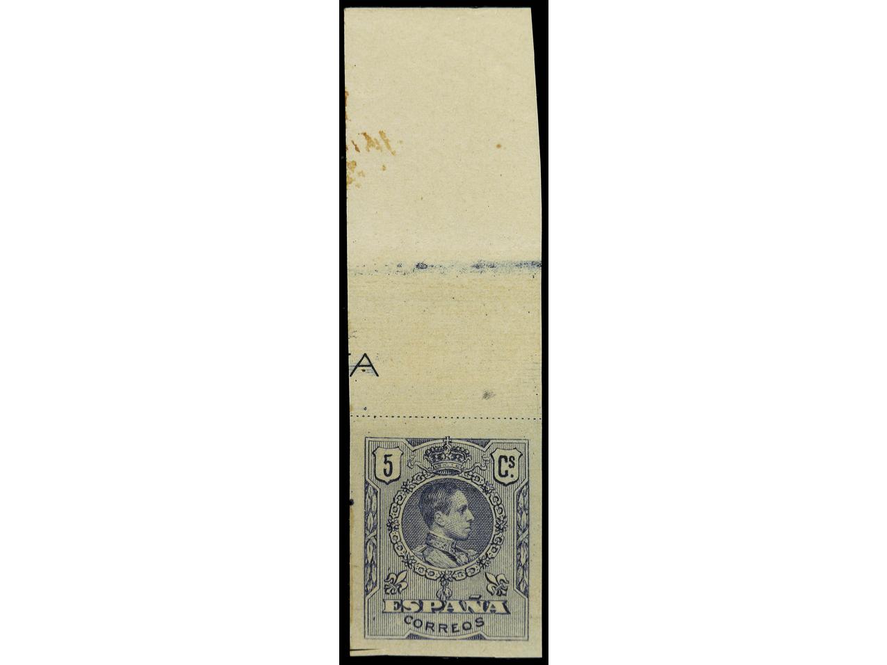 ESPAÑA. 5 cts. azul violeta, sin la habilitación USO VOLUNTARIO. SIN DENTAR. Ed.268Hc. Cat. 132€. (Image1)