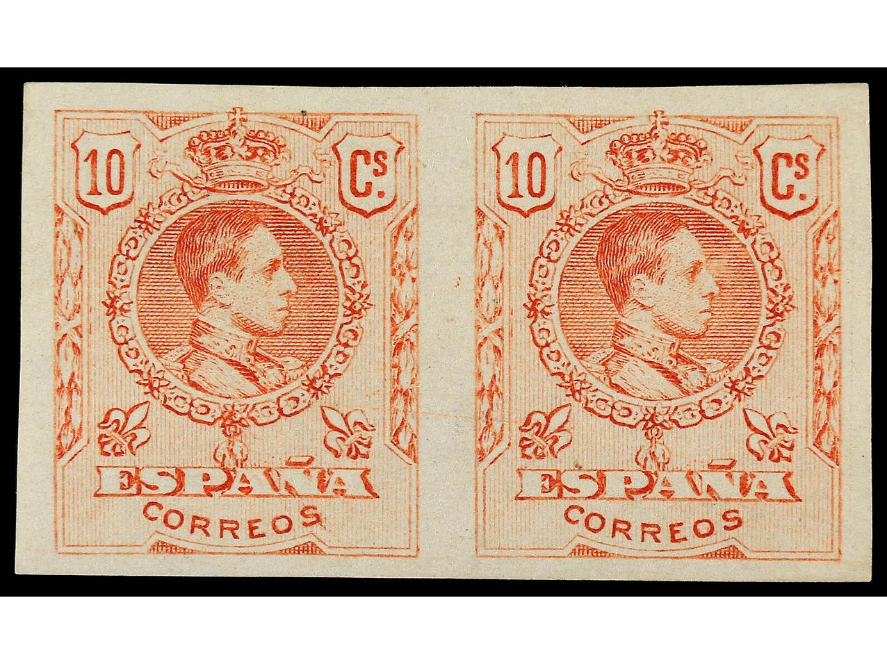 ESPAÑA. 10 cts. rosa. Pareja SIN DENTAR al dorso numeración auténtica B769,841. MUY RARO. Ed.269s (2). Cat. 460€. (Image1)