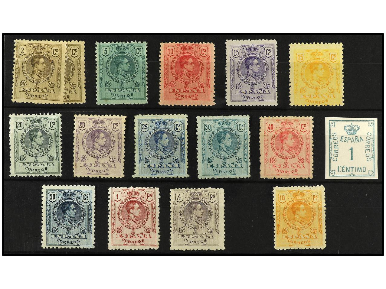 ESPAÑA. SERIE COMPLETA. 14 valores. Sellos sin fijasellos, bien centrados. Valores de 30 c., 40 c., 1 pta. y 4 pts., gomas no originales; 50 c. numeración ceros y 10 pts. numeración póstuma. Ed.267/80. (Image1) (Image2)