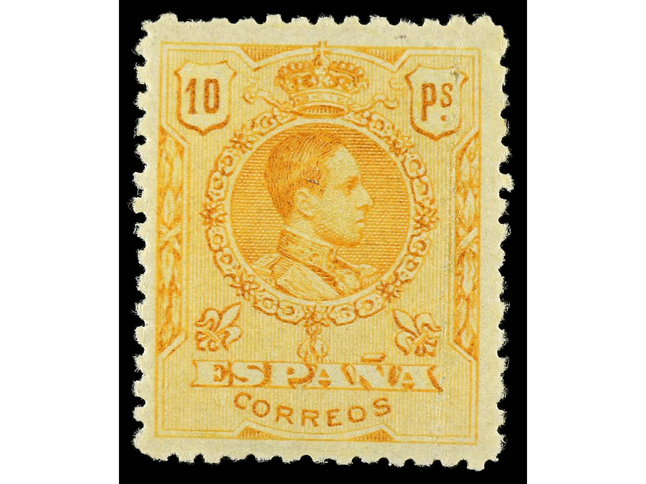 ESPAÑA. 10 pts. naranja SIN DENTAR MARGEN DERECHO. PRECIOSO. Ed.266smd. Cat. 625€. (Image1)