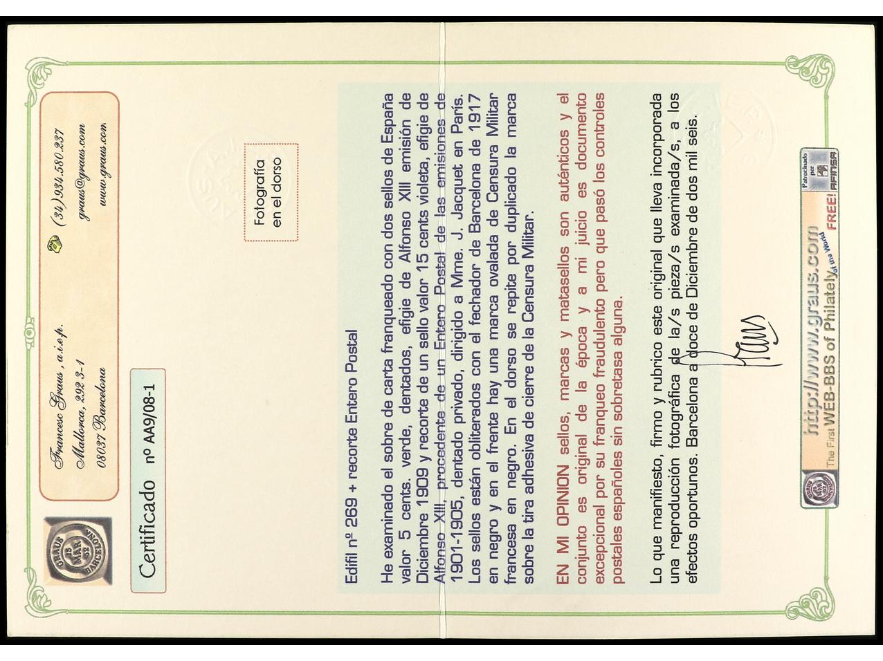 franqueo. MUY RARO. Cert. Graus. Ed.269 (2). (Image1) (Image2)