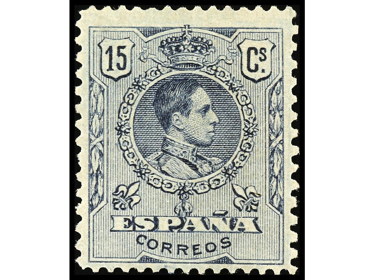 ESPAÑA. 15 céntimos azul, ERROR DE COLOR, numeración A001,357. Ed.270ec. (Image1)