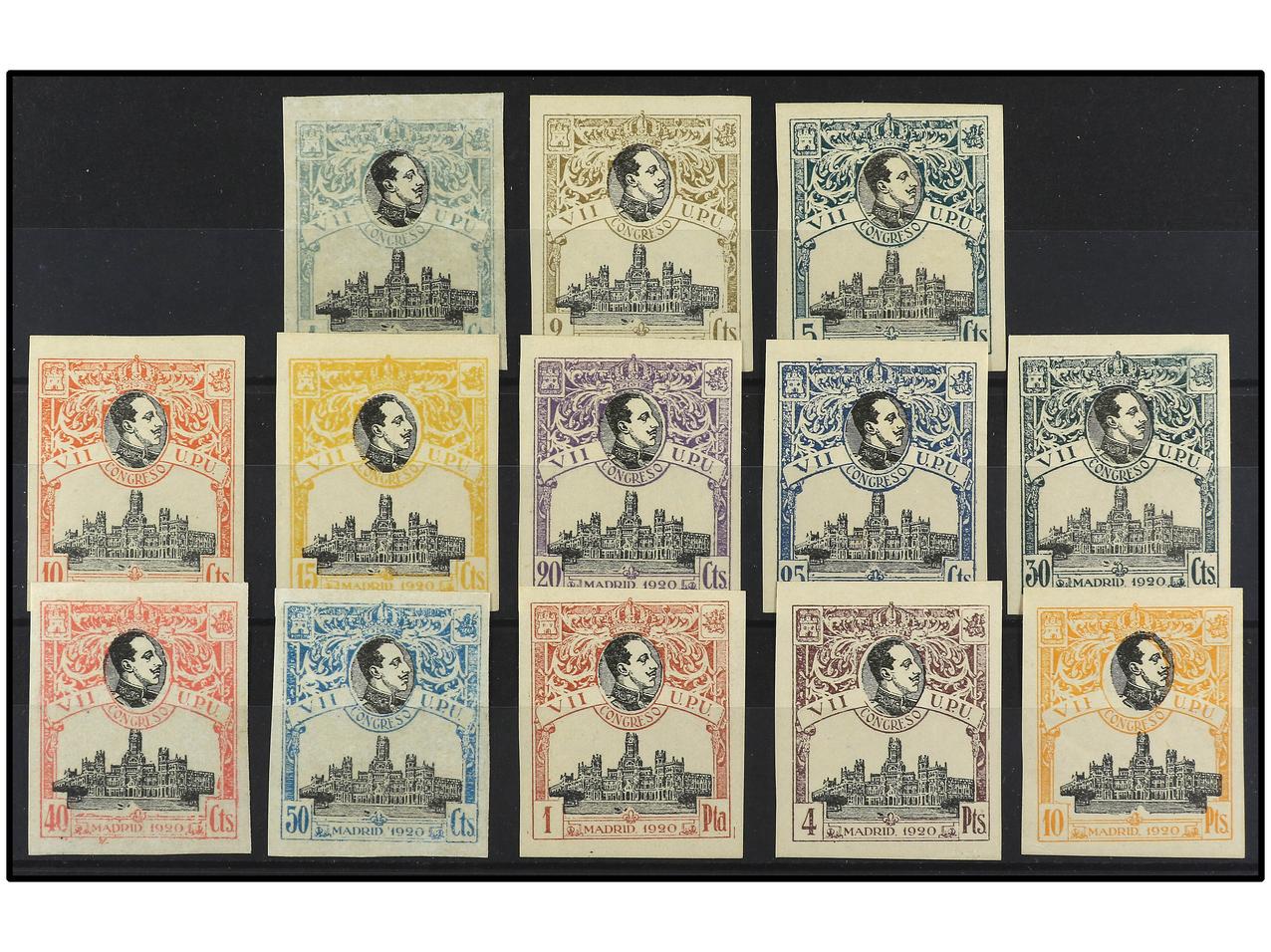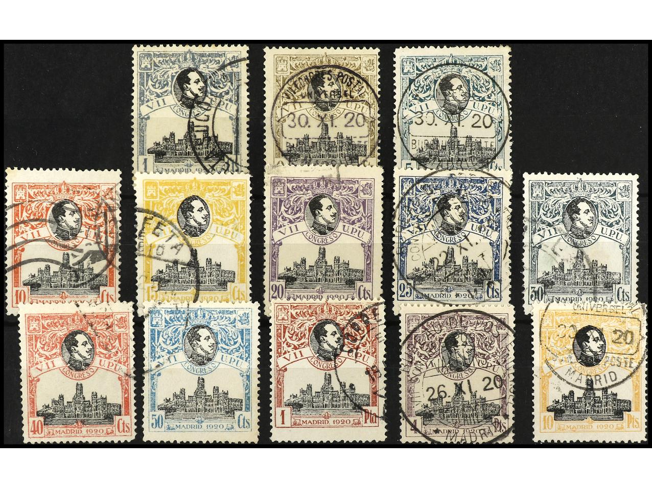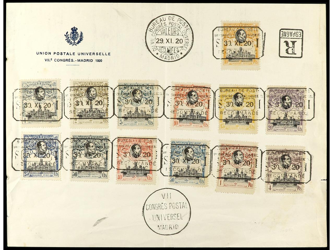ESPAÑA. 1920. SERIE COMPLETA sobre hoja de papel del Congreso de la Unión Postal Universal con la serie completa con el matasello especial para el correo certificado. PRECIOSO. Ed.297/309. (Image1) (Image2)