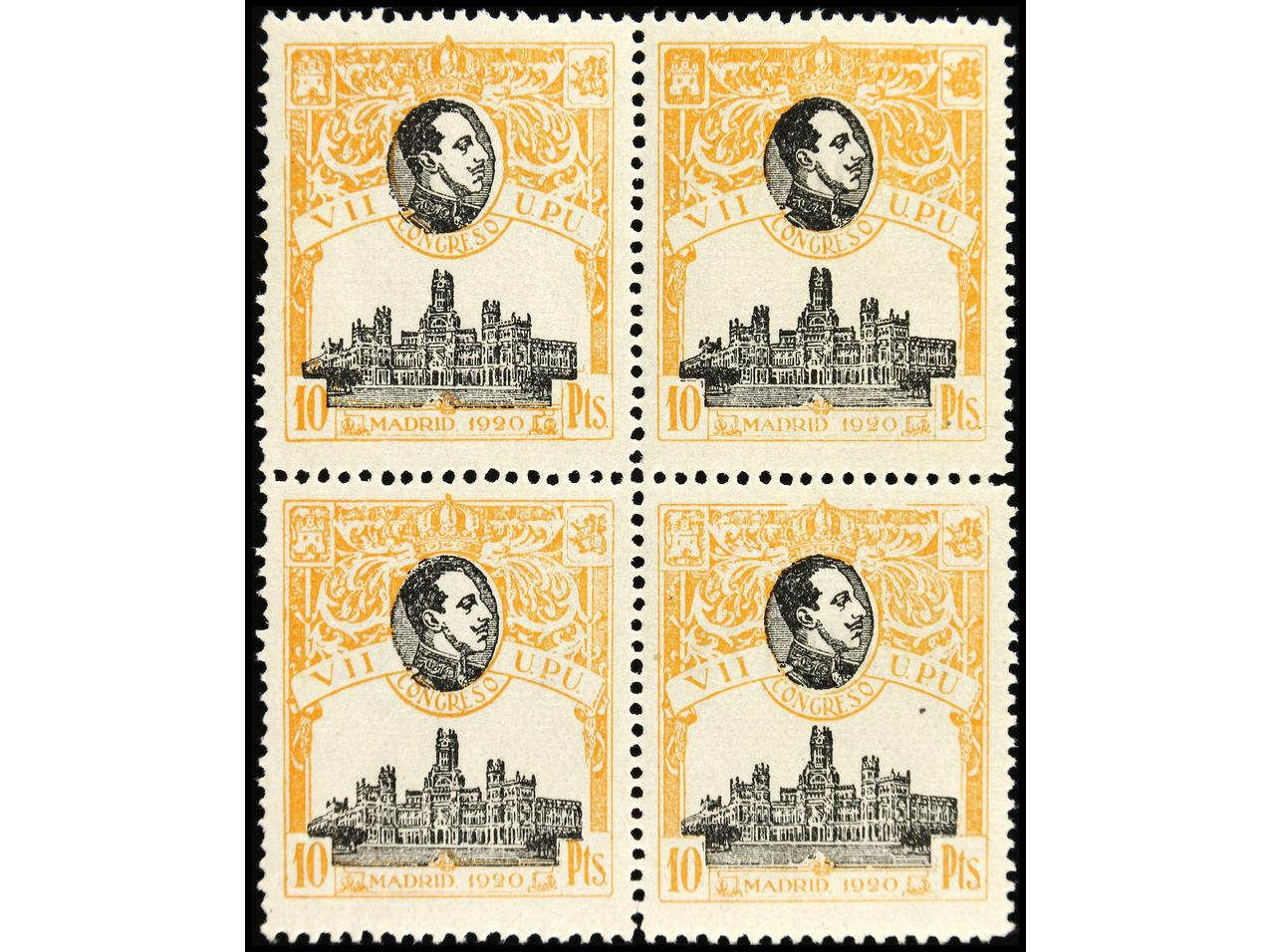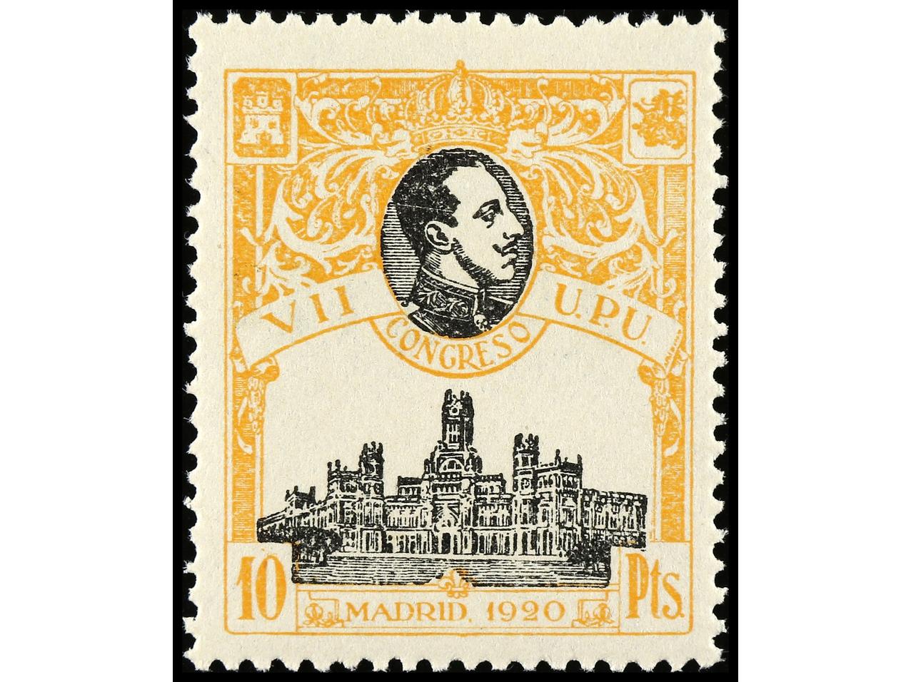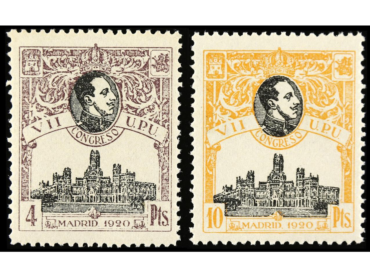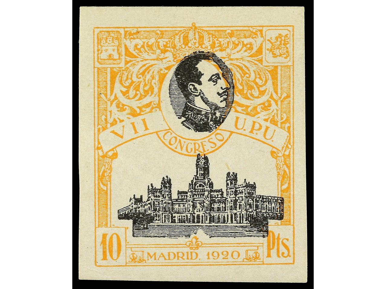 ESPAÑA. 1920. SERIE COMPLETA sobre hoja de papel del Congreso de la Unión Postal Universal con la serie completa con el matasello especial para el correo certificado. PRECIOSO. Ed.297/309. (Image1) (Image2)