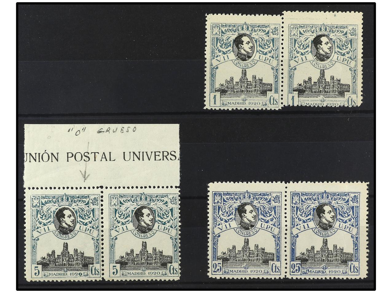 ESPAÑA. 1 cto. pareja con el dentado vertical desplazado. 5 cts. ´0´ de ´1920´ grande y 25 cts. ´5´ deformado. Ed.297, 299t, 303t. (Image1)