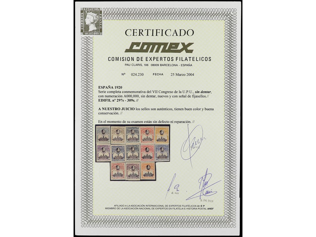ESPAÑA. SERIE COMPLETA SIN DENTAR. Muy bonita y RARA. Cert. COMEX. Ed.297/309s. Cat. 4.800€. (Image1) (Image2)