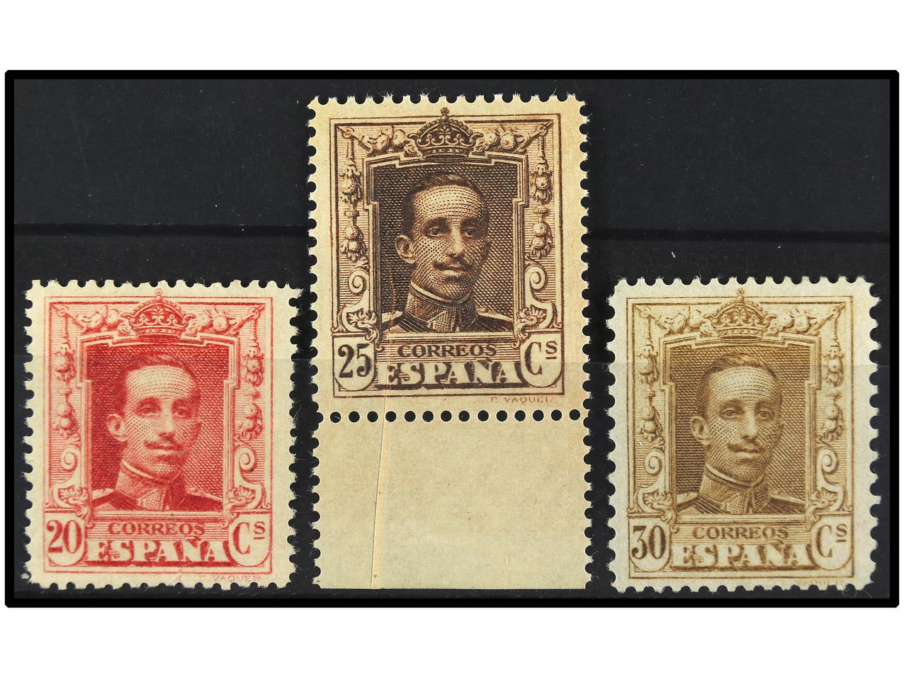 ESPAÑA. 20 cts. carmín, 25 cts. castaño y 30 cts. castaño claro CAMBIOS DE COLOR. No reseñados. Ed.316, 317, 318. (Image1)