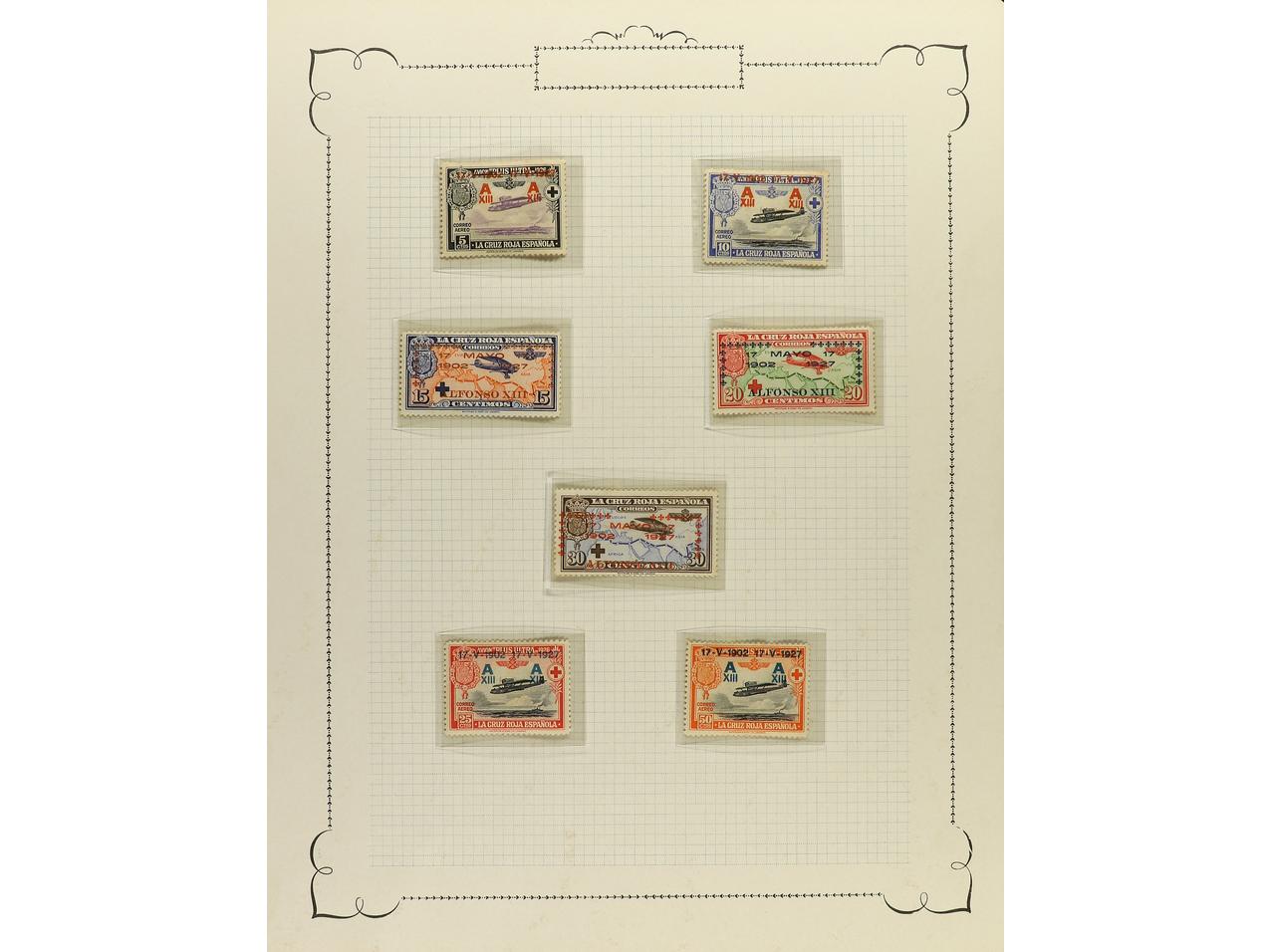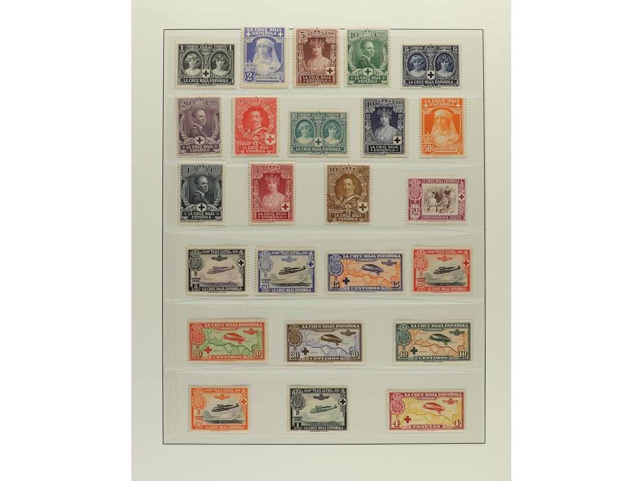 ESPAÑA. EMISIONES CRUZ ROJA. Juego completo con todas las emisiones incluyendo la rara de Colonias más algunas variedades en la habilitación, sin valorar. Ed. 325/38 y 339/48 en usado. En general buena calidad, aunque puede haber algún