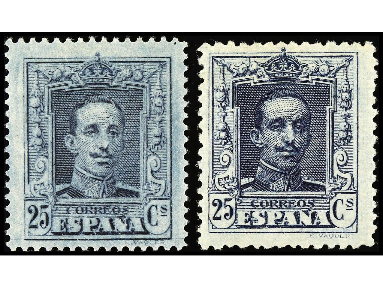 ESPAÑA. 25 c. azul, NO EXPENDIDO. Bien centrados. NE 23, leve pliegue en esquina. Ed.NE 23/24. Cat. 600€. (Image1) (Image2)