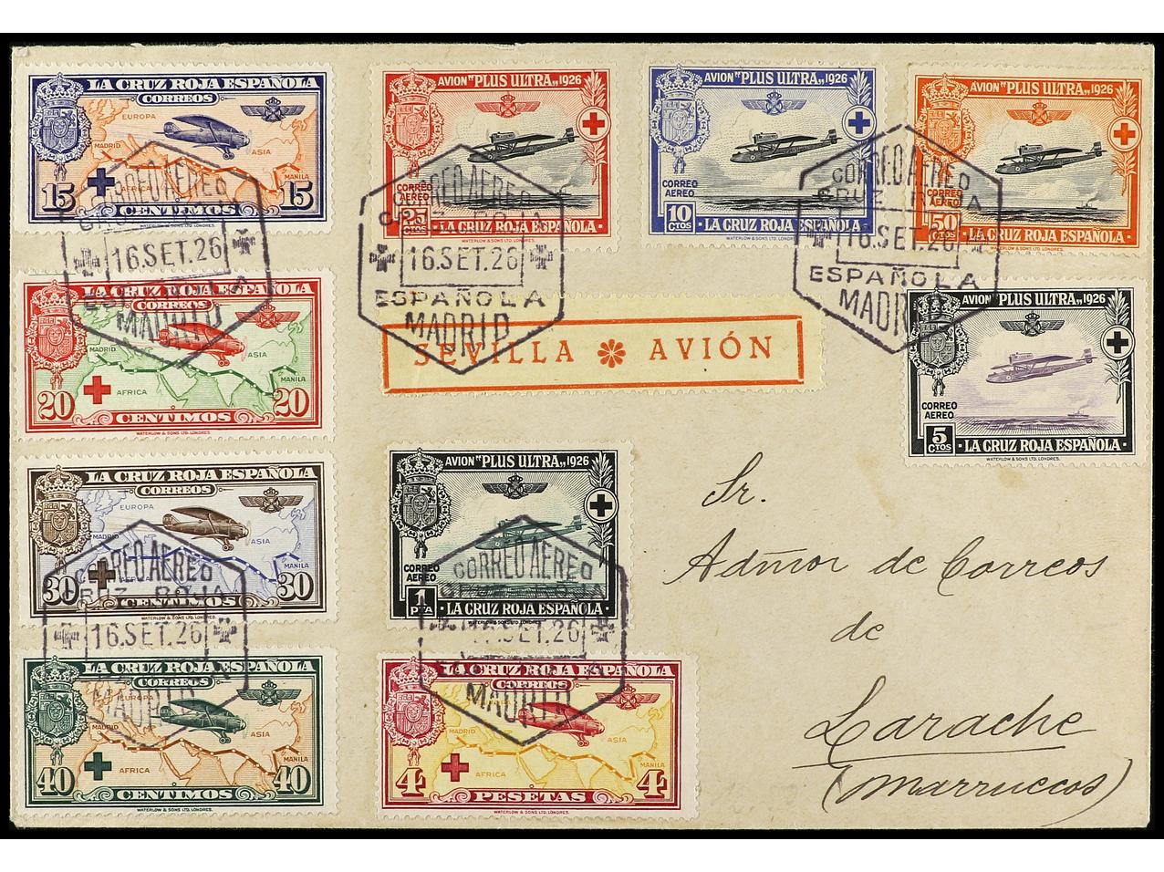 ESPAÑA. 1926. MADRID a LARACHE (Marruecos). Serie completa en carta circulada, al dorso llegada. Ed.339/48. (Image1) (Image2)
