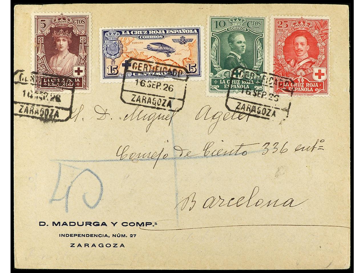ESPAÑA. 1926. ZARAGOZA a BARCELONA. Precioso franqueo, al dorso llegada. Ed.327, 328, 331, 341. (Image1) (Image2)