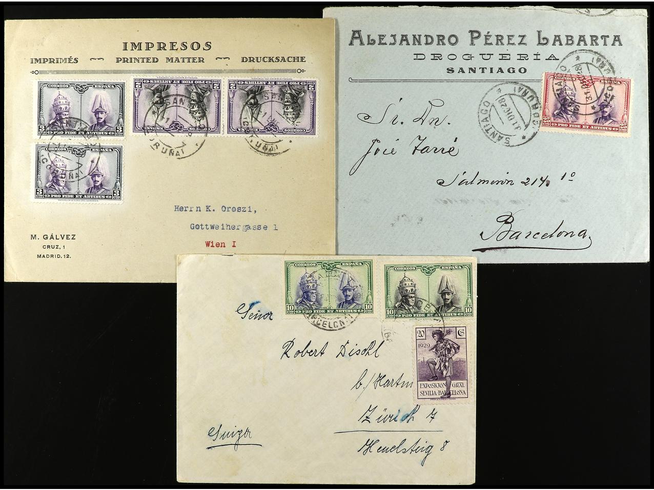 ESPAÑA. 1929. EXPO. SEVILLA y BARCELONA. Tres cartas con diversos franqueos, dos con llegada y una sin. (Image1) (Image2)