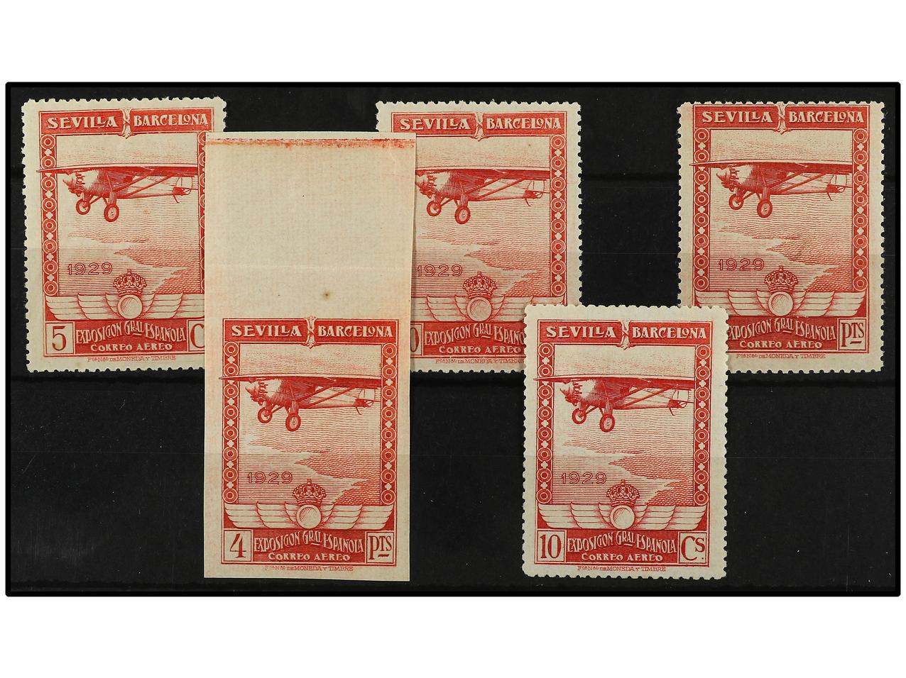 ESPAÑA. SERIE COMPLETA. 4 valores con dentado 13 3/4 y 1 sin dentar. COLORES CAMBIADOS. RAROS. Ed.448/53ccP. Cat. +837€. (Image1) (Image2)