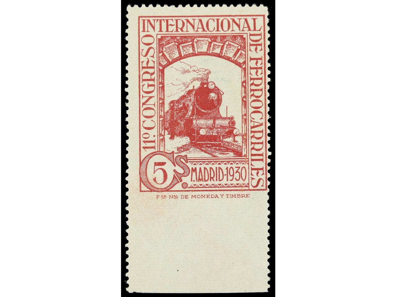 ESPAÑA. 5 cts. lila. SIN DENTAR MARGEN INFERIOR. RARO. Ed.471smz. Cat. 250€. (Image1)