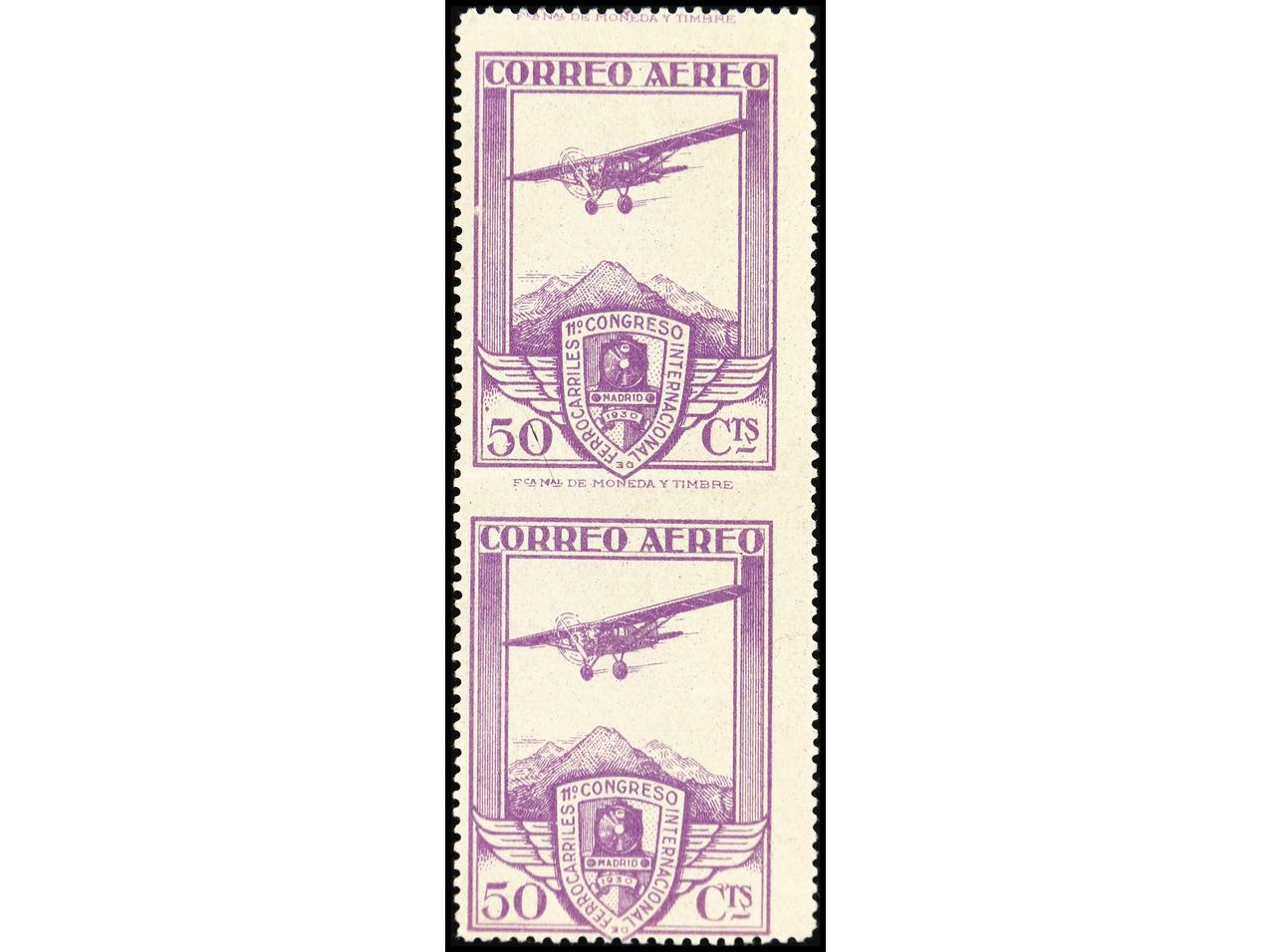 ESPAÑA. 50 cts. violeta. Pareja vertical SIN DENTAR EN MEDIO. MUY BONITA y MUY RARA. Ed.486spv. Cat. 450€. (Image1)