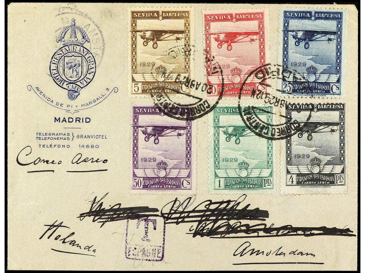 ESPAÑA. 1929. MADRID a HOLANDA. Serie completa en carta circulada, parte de la dirección tachada, al dorso marca de llegada a Amsterdam. Ed.448/53.