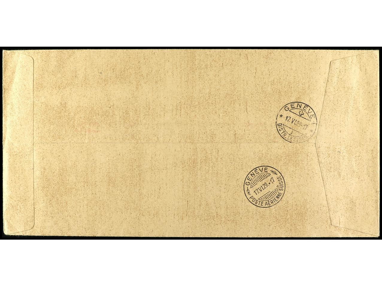 ESPAÑA. 1929. MADRID a GINEBRA. Serie completa en carta circulada, mat. conmemorativo del Congreso, al dorso llegada. Ed.455/68. (Image1) (Image2)