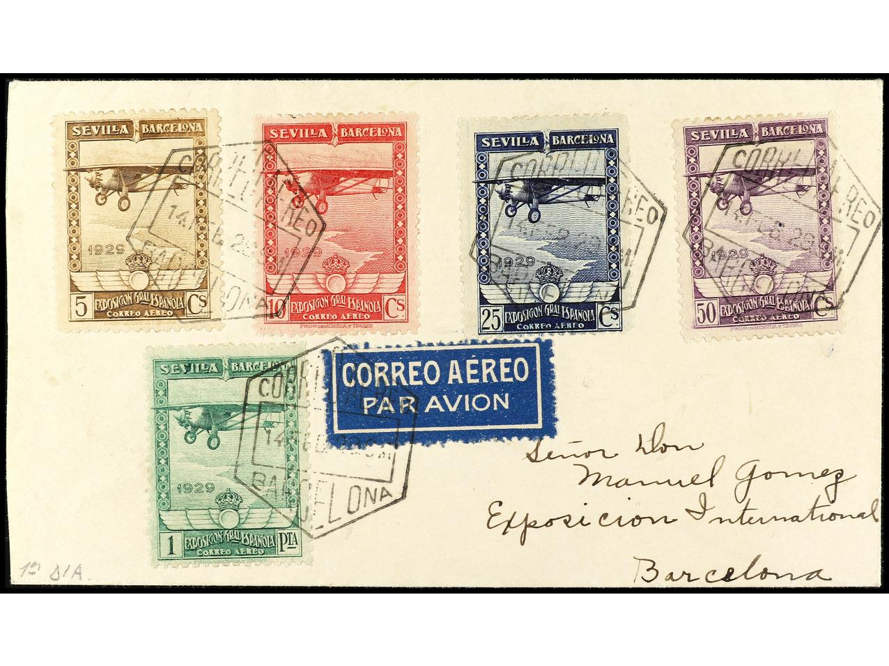 ESPAÑA. 1929. BARCELONA correo interior. 5 cts. a 1 pta. MUY BONITA. Ed.448/52. (Image1) (Image2)