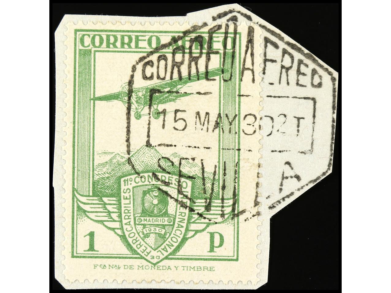 ESPAÑA. 1930. BARCELONA a MADRID. 5 cts. sepia, 50 cts. lila (2) y sello del Ay. de Barcelona, al dorso llegada del Correo Aéreo de Madrid. Ed.483, 486 (2).
