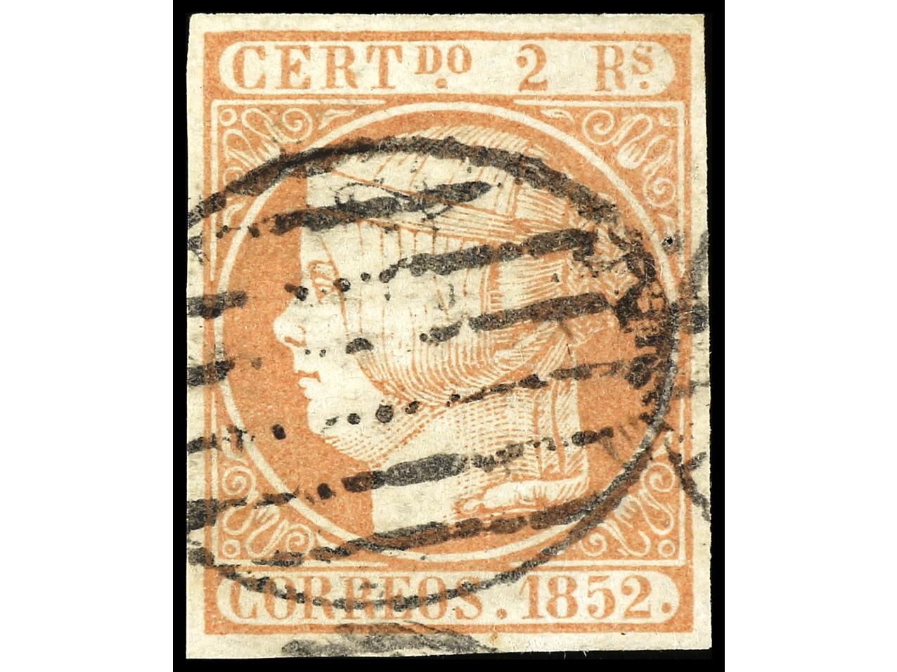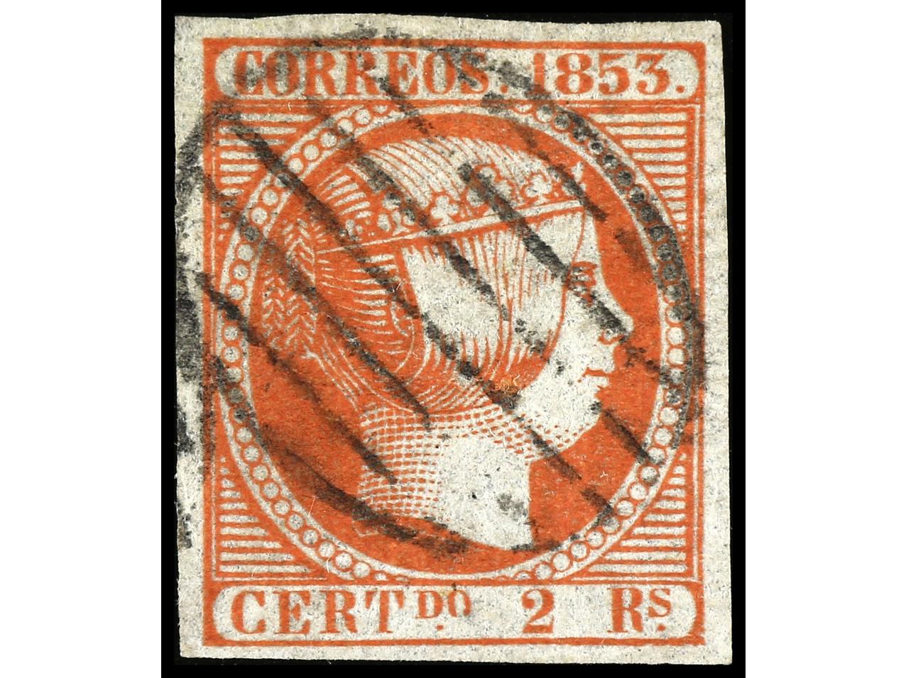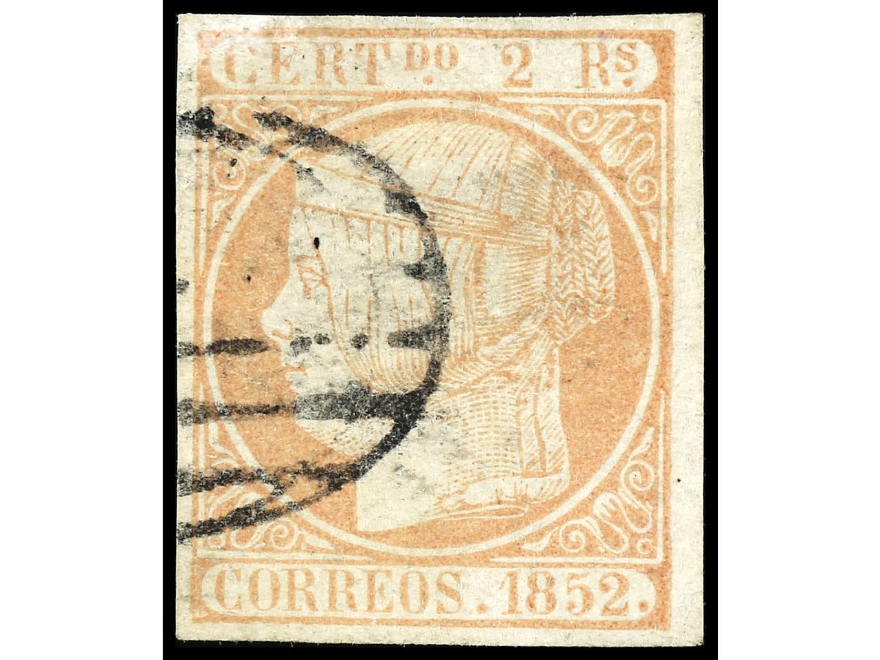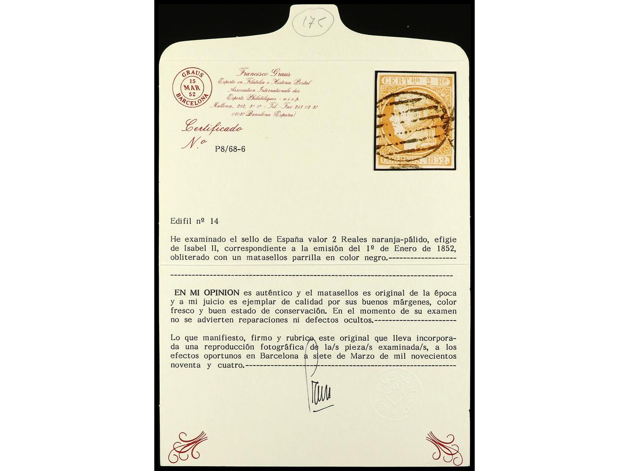 ESPAÑA. 2 reales naranja. Color intenso. MAGNÍFICO EJEMPLAR. Cert. GRAUS. Ed.14. Cat. 4.800€. (Image1) (Image2)