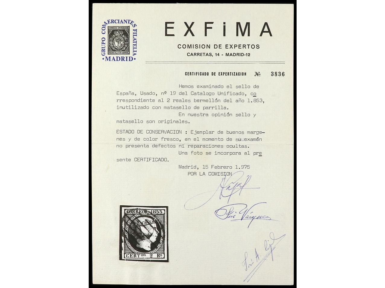 ESPAÑA. 2 reales bermellón. PIEZA DE LUJO. Cert. EXFIMA. Ed.19. Cat. 9.000€. (Image1) (Image2)