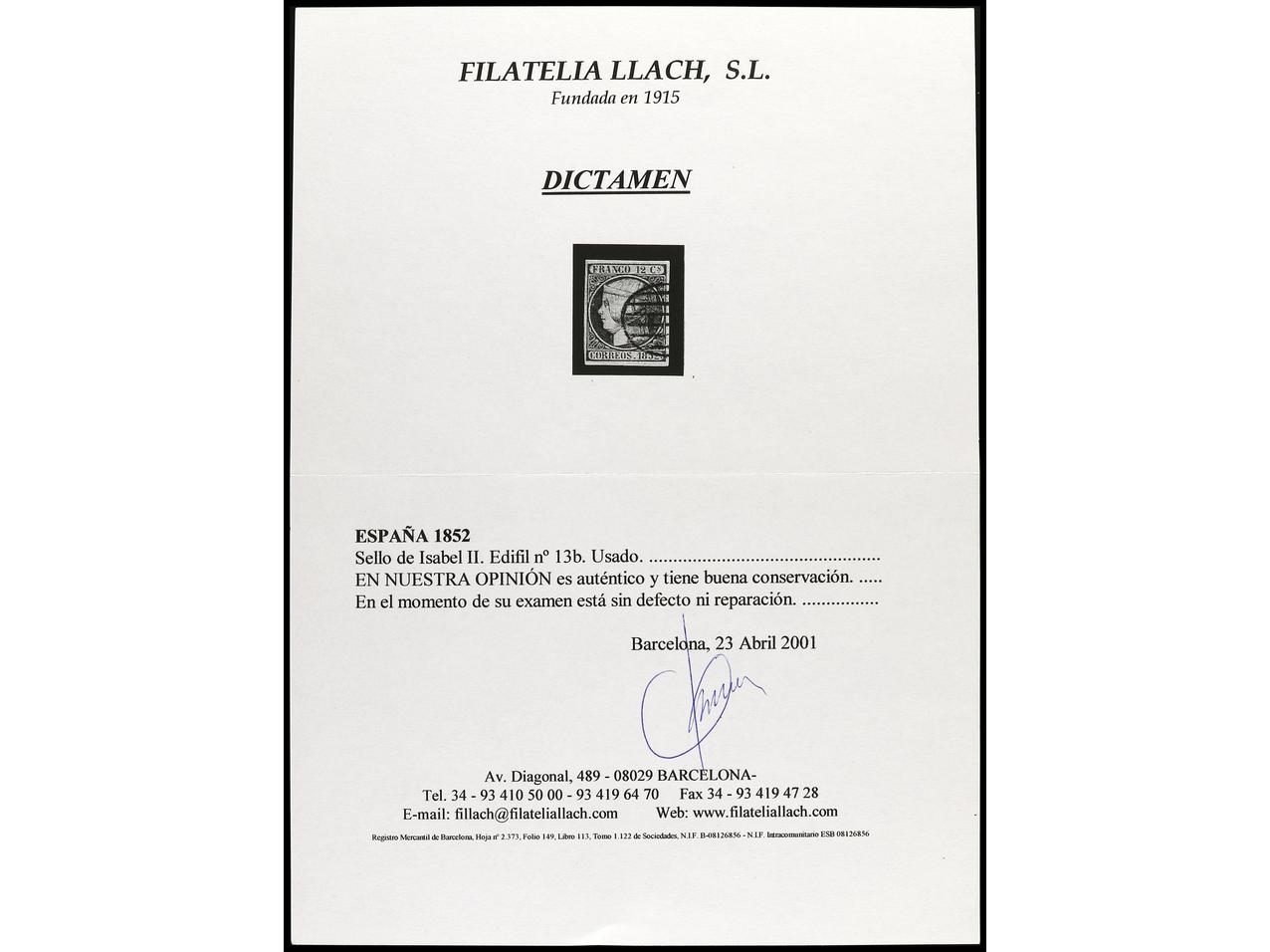 ESPAÑA. 12 cuartos gris lila (Ed. especializado 13b). RARO y de LUJO. Dictamen LLACH. Ed.13. (Image1) (Image2)