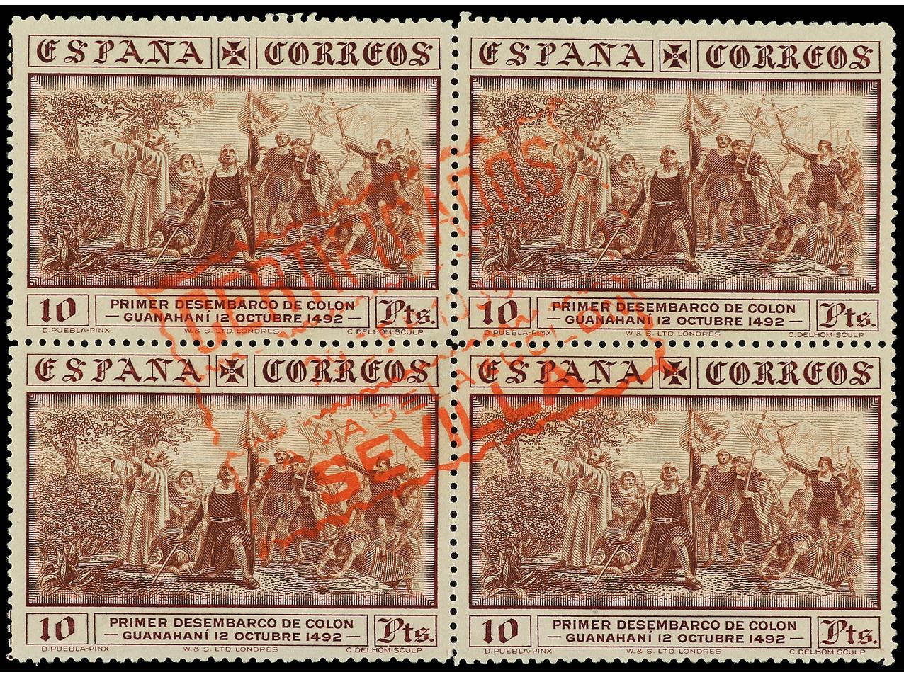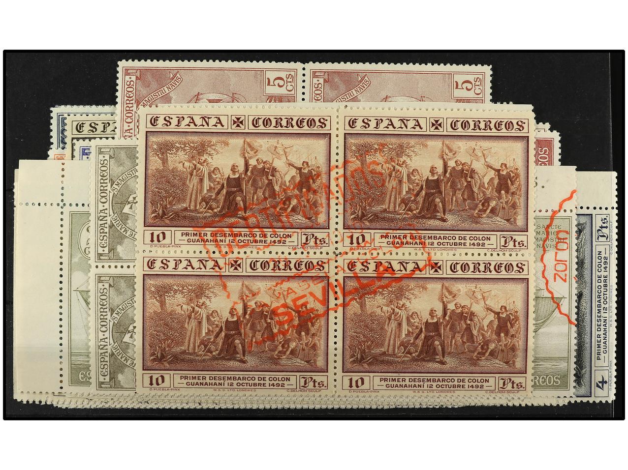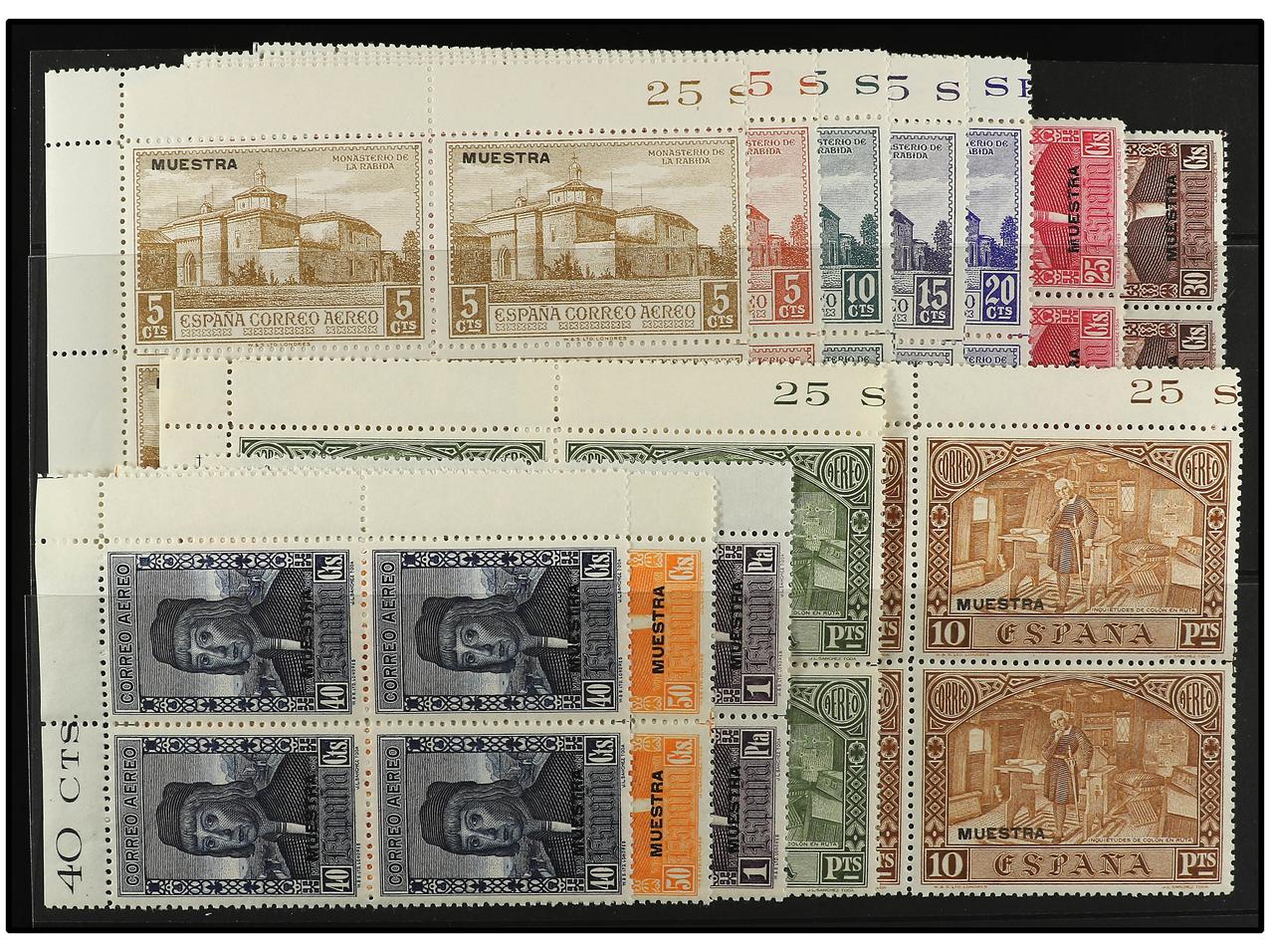ESPAÑA. SERIE COMPLETA. 12 valores en bloques de cuatro con habilitación MUESTRA. Ed.547/58M(4). Cat. 264€. (Image1)