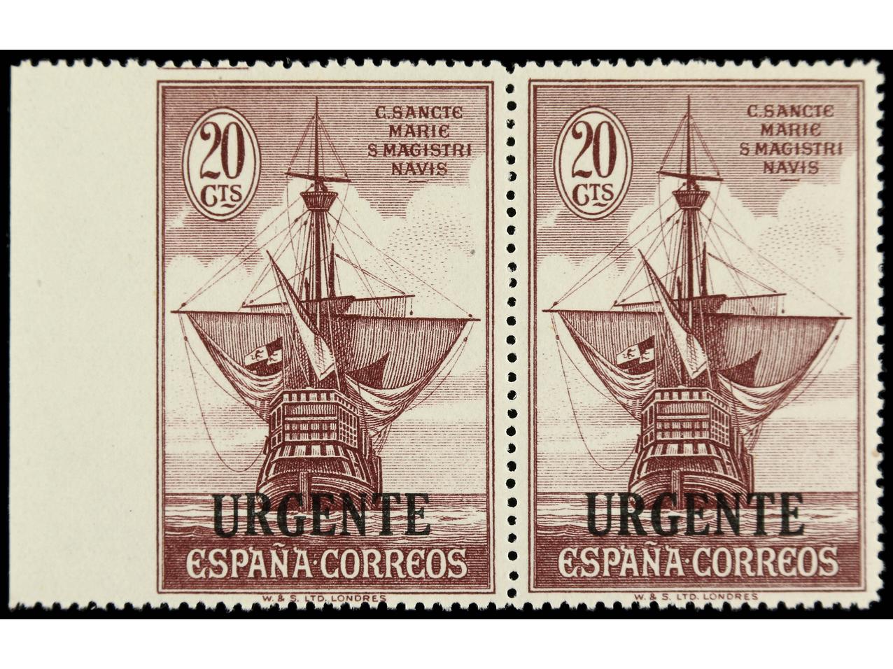 ESPAÑA. 10 cts. verde y 20 cts. lila (urgente) SIN DENTAR MARGEN IZQUIERDO. Ed.534smi y 536smi. (Image1) (Image2)