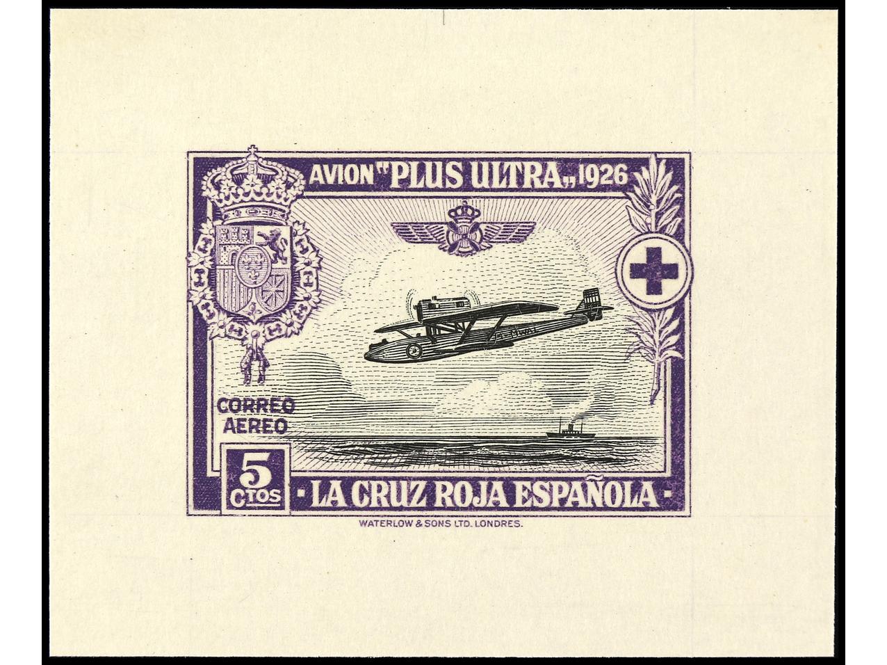 ESPAÑA. CRUZ ROJA. CORREO AÉREO. 5 cts. violeta y negro. RARA. (Gálvez CA 38). (Image1)
