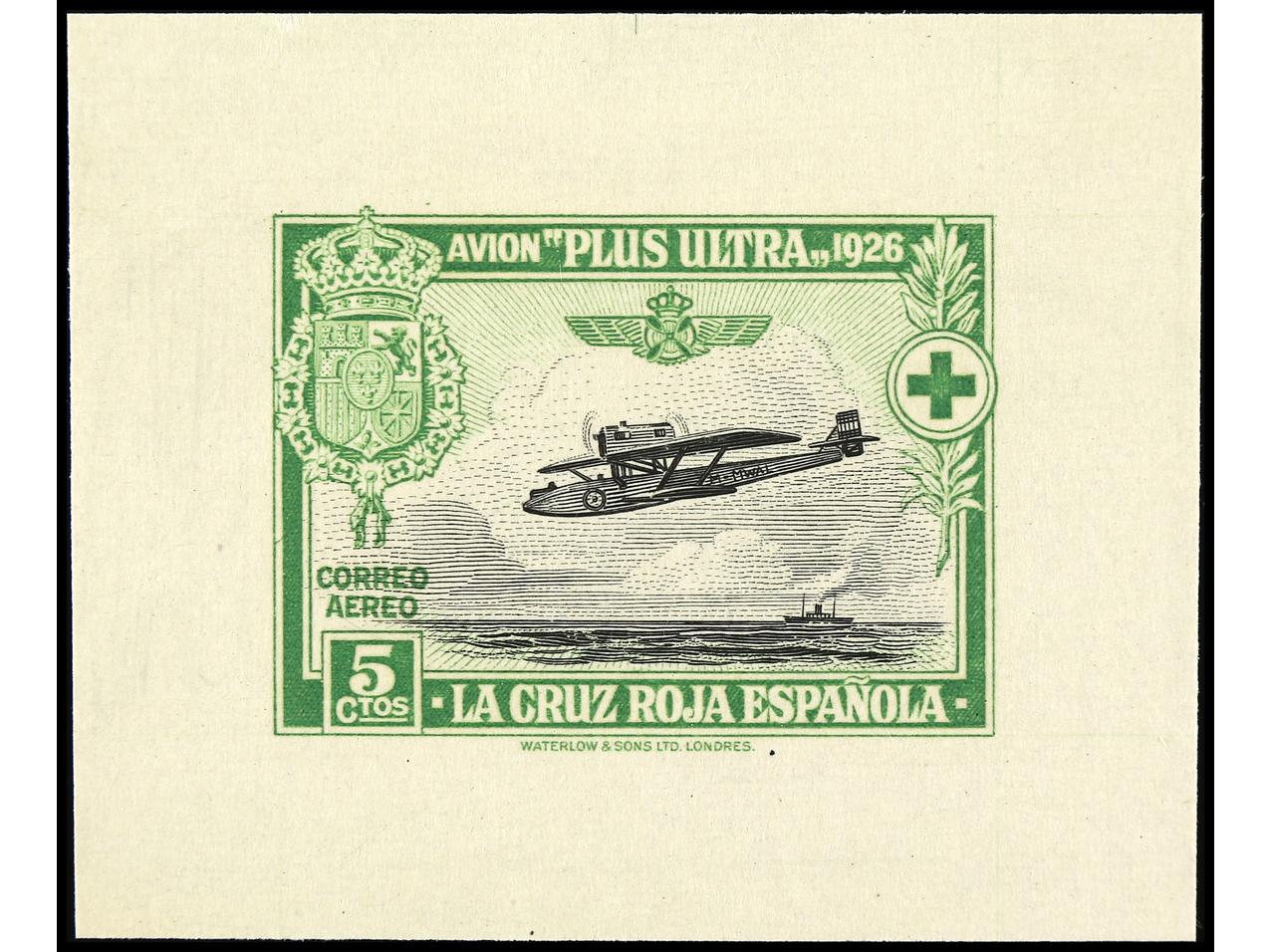 ESPAÑA. CRUZ ROJA. CORREO AÉREO. 5 cts. verde amarillo y negro. RARA. (Gálvez CA 39). (Image1)