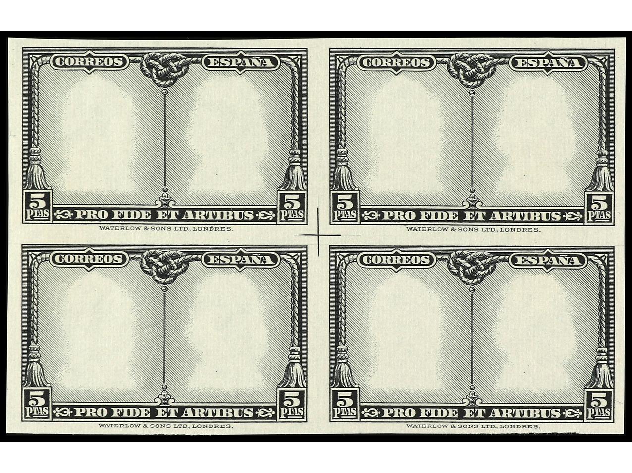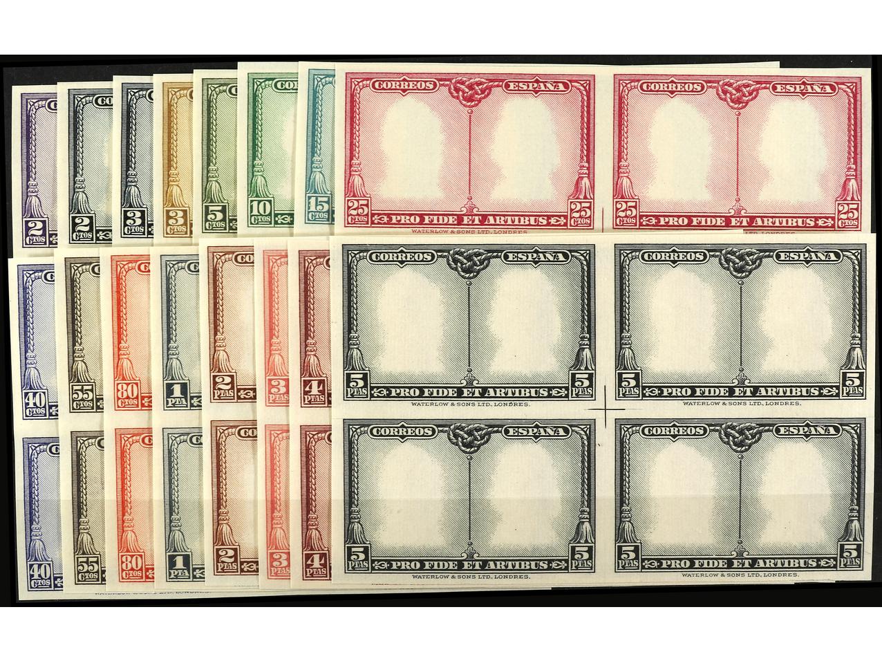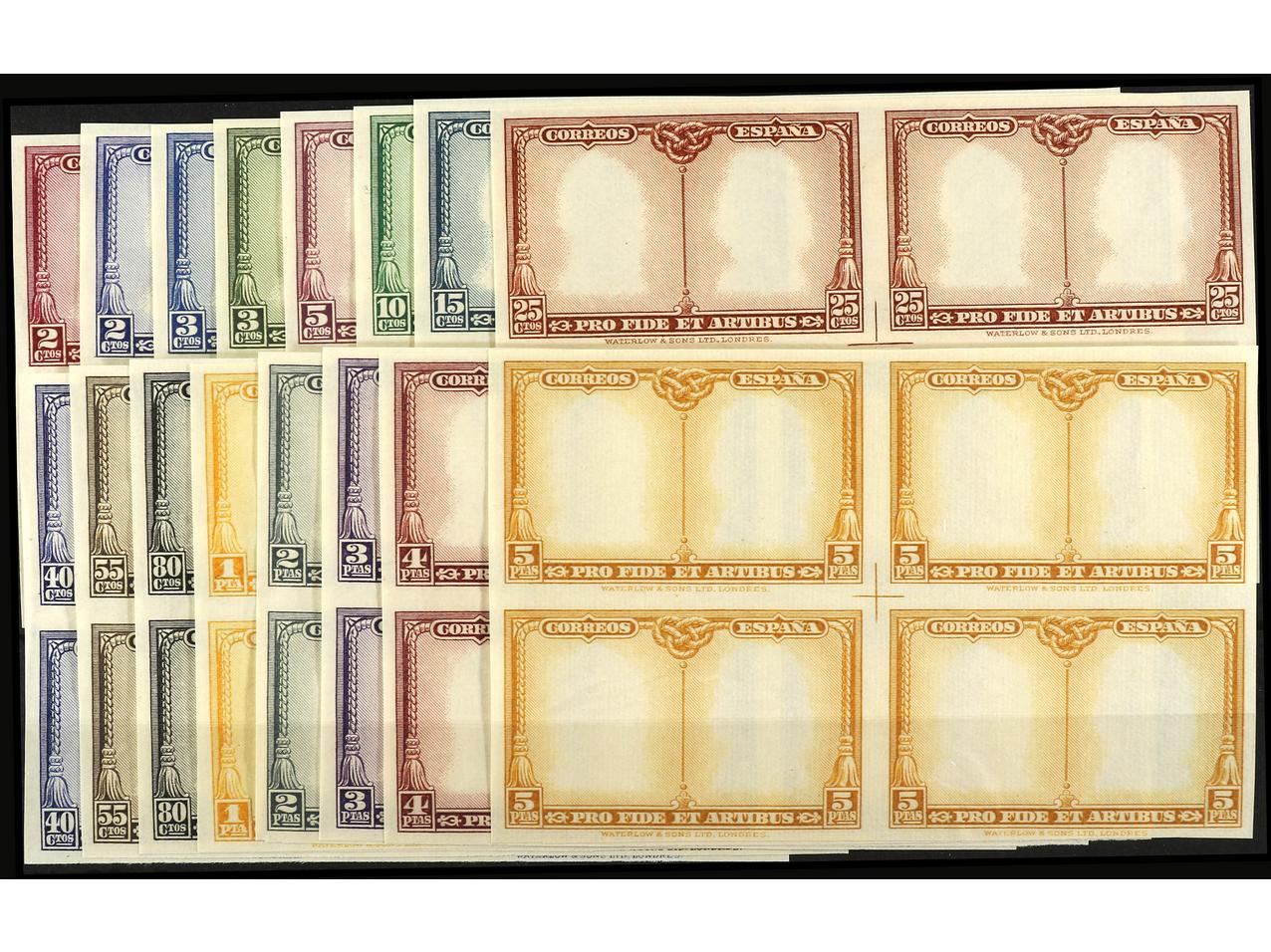 ESPAÑA. CATACUMBAS. ENSAYOS DE PLANCHA. MARCOS SOLAMENTE. Juego completo en los colores correspondientes a las series de TOLEDO y SANTIAGO en bloques de cuatro. (Gálvez 2326/41 y 2342/57). (Image1) (Image2)