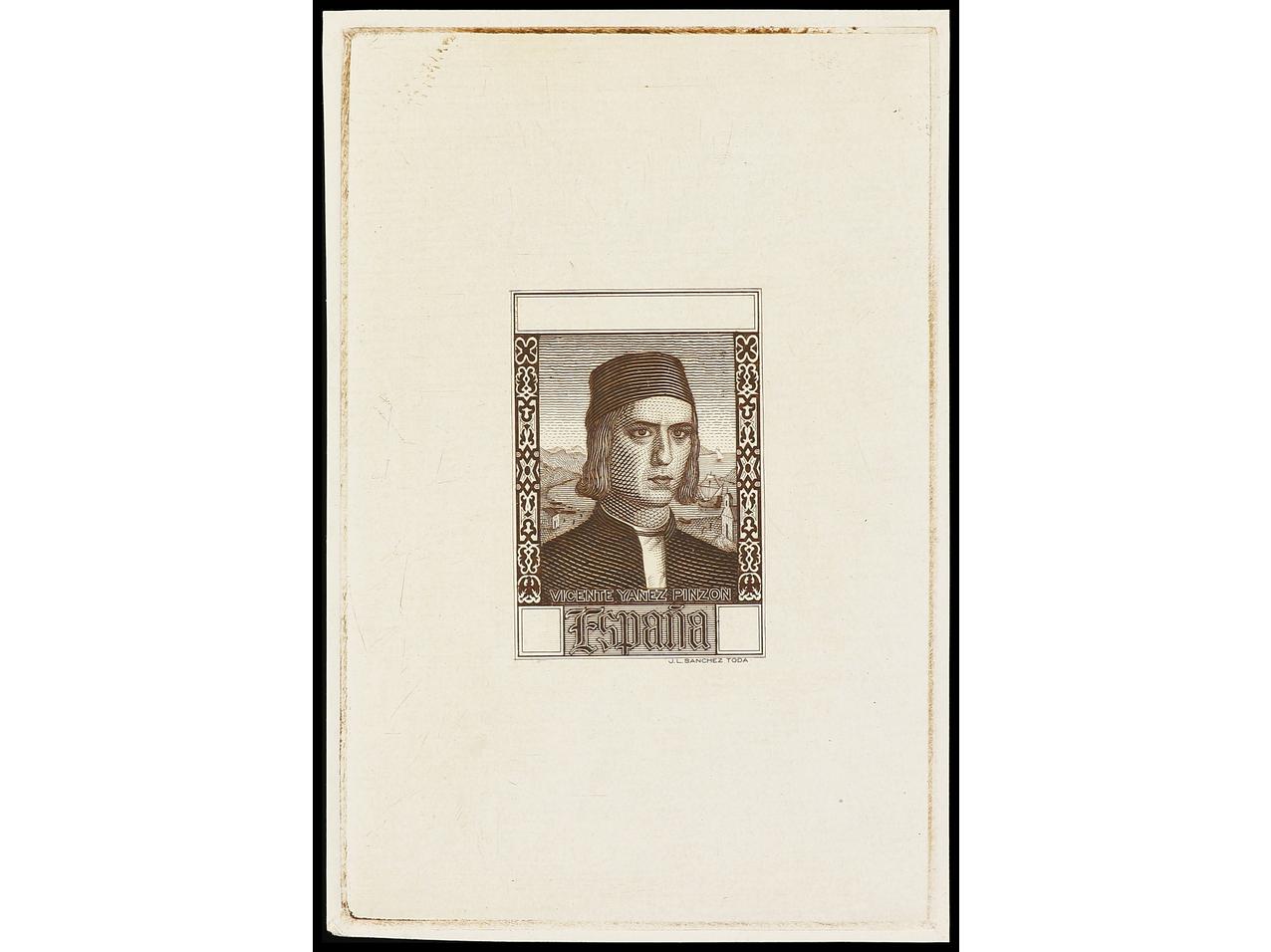 ESPAÑA. COLÓN. CORREO AÉREO EUROPA. PRUEBA DE PUNZÓN. Grabado sin terminar en color castaño sobre papel estucado. RARA. (Gálvez CA 270). (Image1)