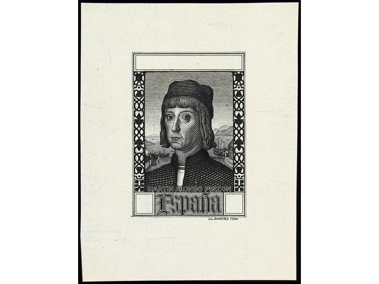 ESPAÑA. COLÓN. CORREO AÉREO EUROPA. PRUEBA DE PUNZÓN. Grabado sin terminar en color negro sobre papel estucado. RARA. (Gálvez CA 280). (Image1)