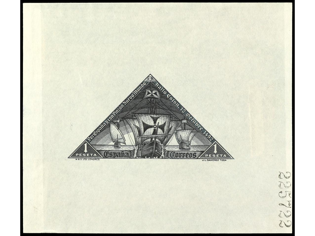 ESPAÑA. COLÓN. PRUEBA DE PUNZÓN. Sin las leyendas inferiores en color violeta rojo y violeta. RARA. (Gálvez 2669). (Image1)