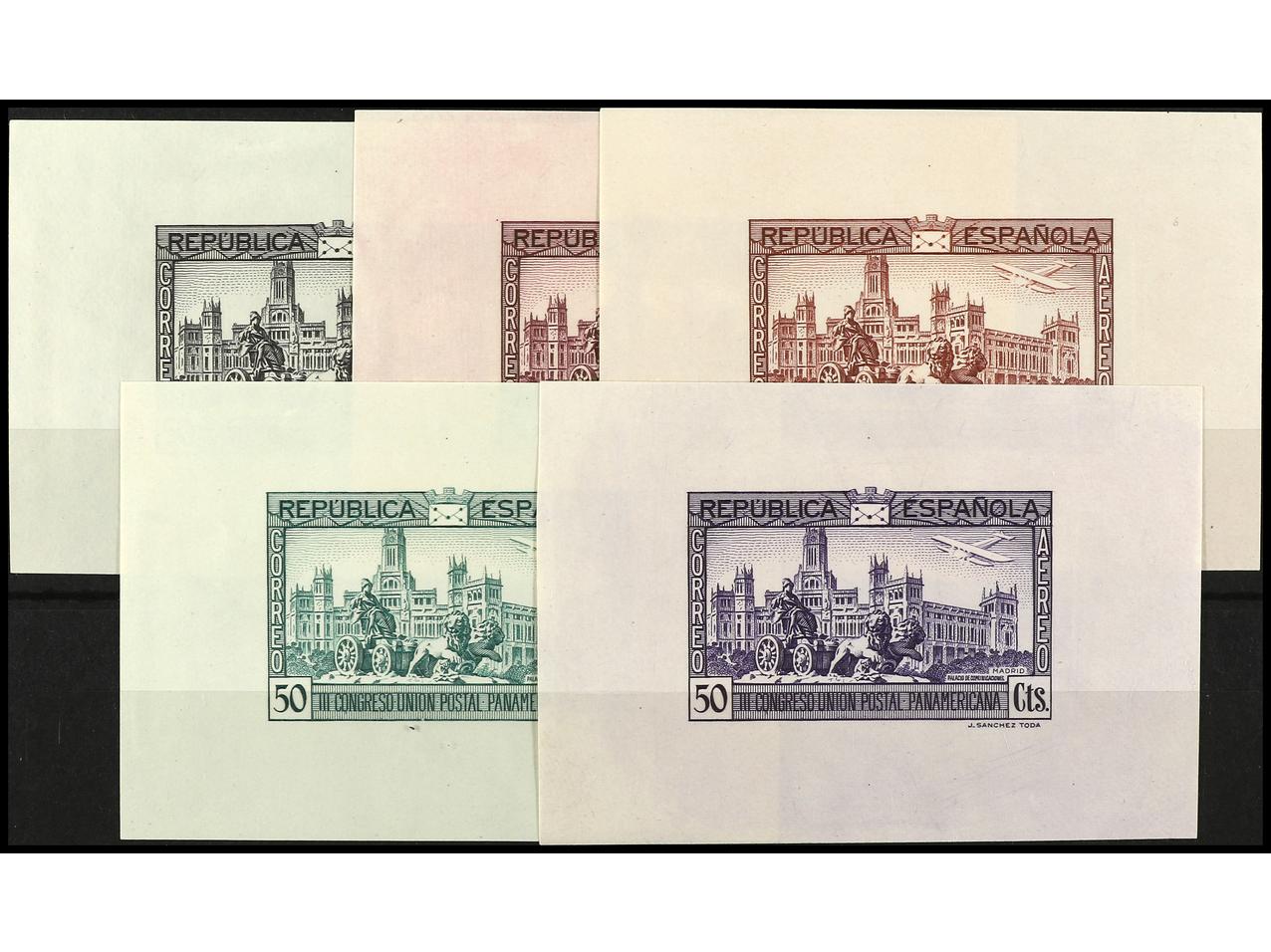 ESPAÑA. UNIÓN POSTAL PANAMERICANA. CORREO AÉREO. ENSAYOS DE PLANCHA. Serie completa a falta del 4 pts. en los colores adoptados. (Image1) (Image2)
